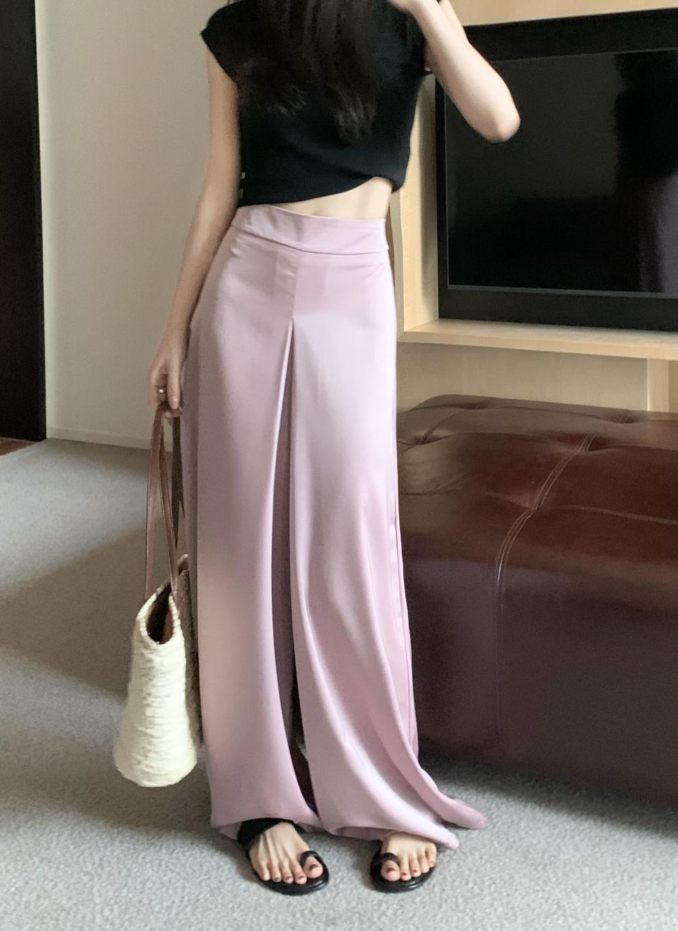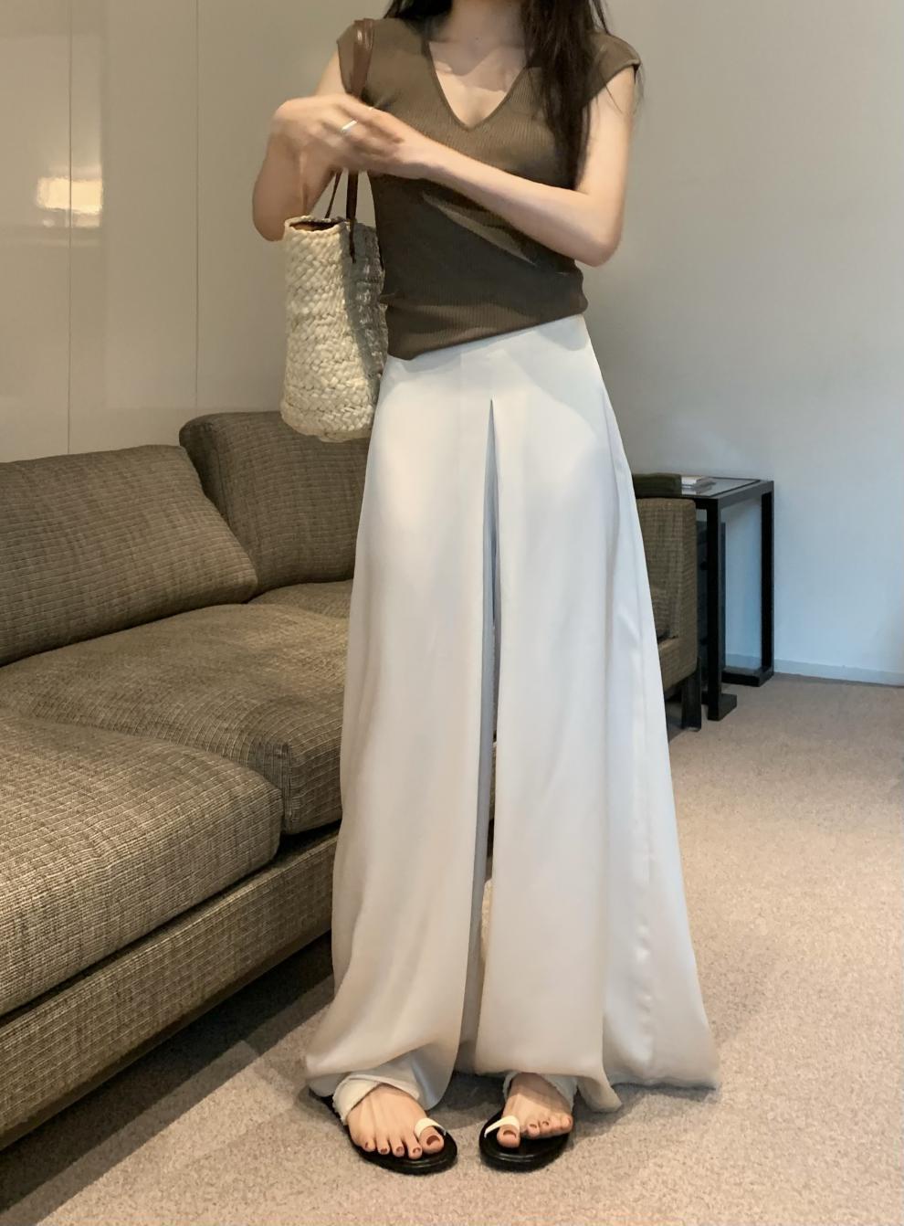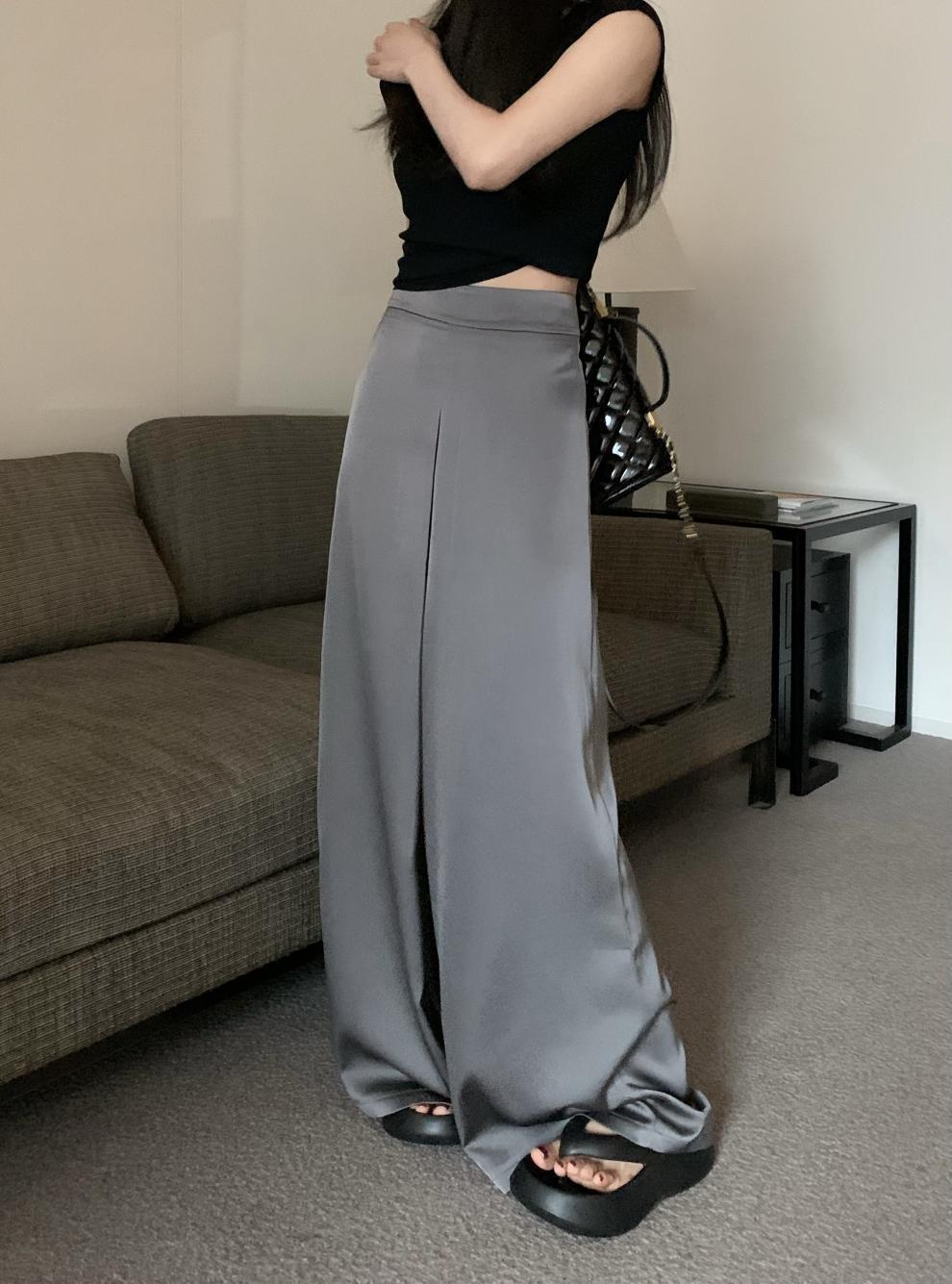 美脚効果を引き出すハイウエストデザインのレディースワイドパンツ。裾にかけて広がるワイドシルエットが、脚をまっすぐ長く見せつつ、こなれ感と存在感をプラスします。シンプルな無地デザインで、どんなトップスとも相性抜群です。