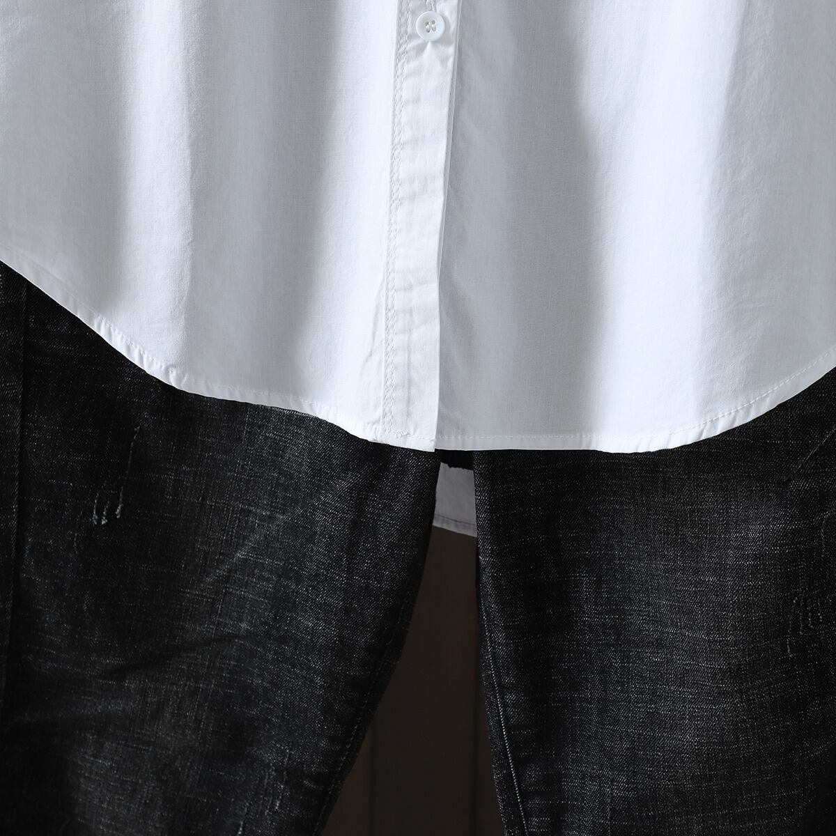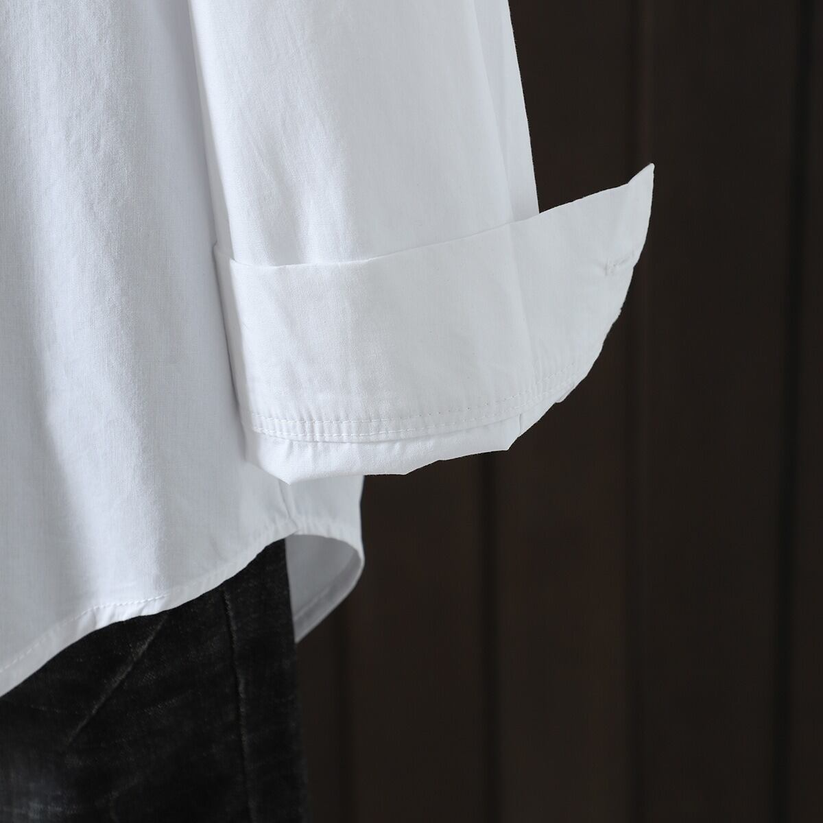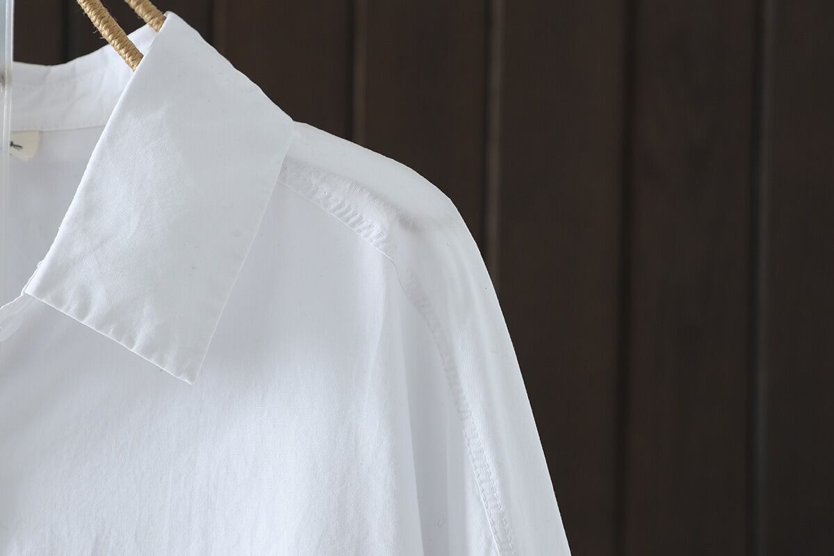 襟付きのストレートなシルエットは、体型カバー効果もあり、カジュアルからきれいめスタイルまで幅広くご利用いただけます。