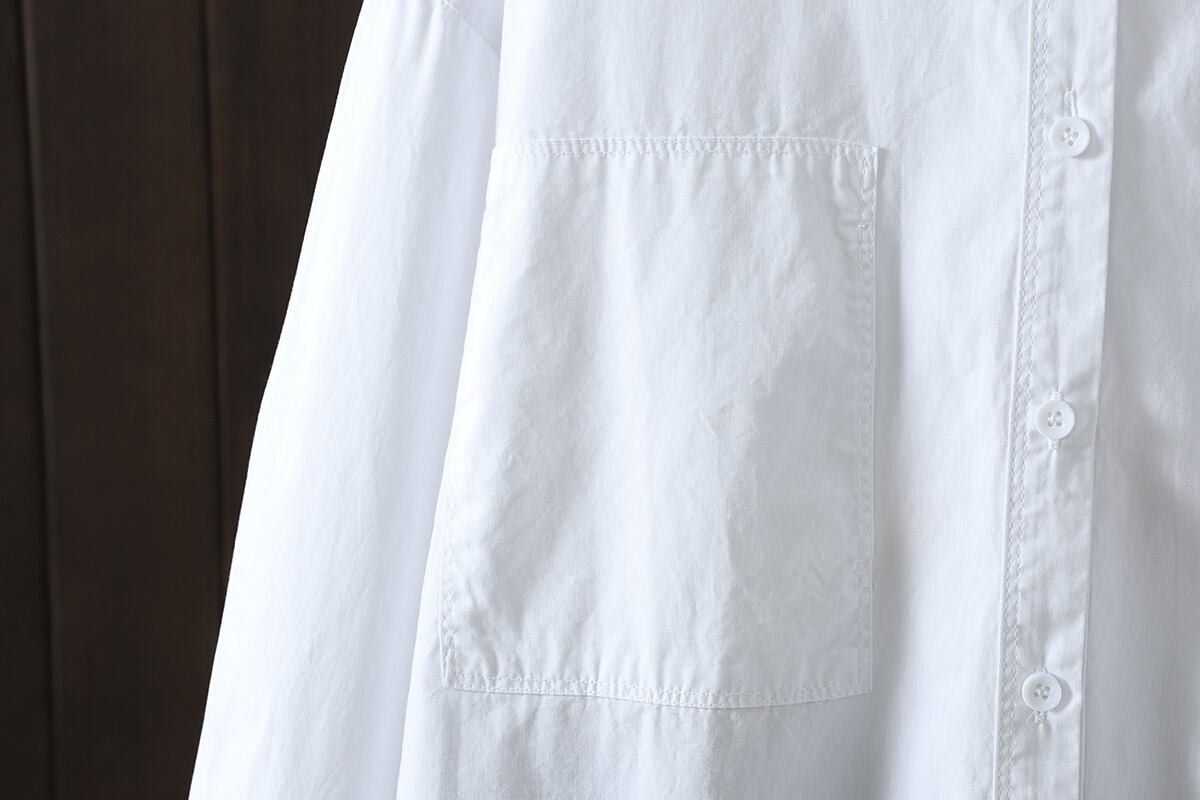 ポケット付きで実用性もバッチリ!薄手のコットン素材は快適で、春夏秋冬のオールシーズンにおすすめのアイテムです。