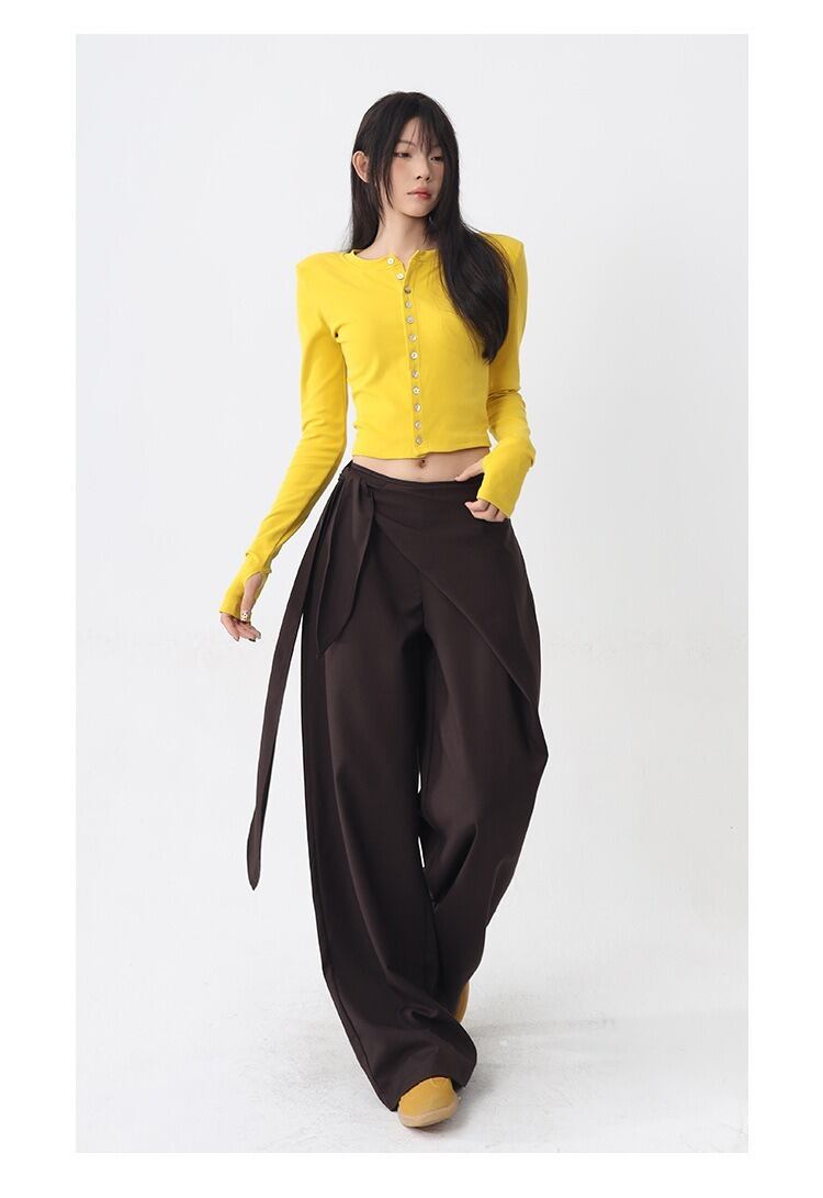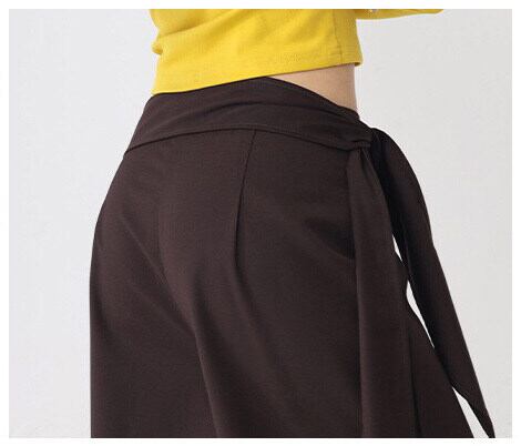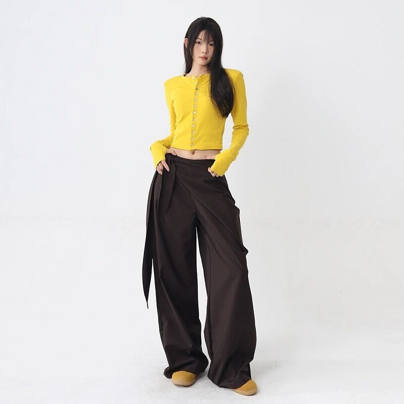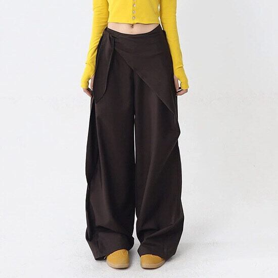 しなやかな落ち感が美しい、ラップ風デザインのワイドパンツ。