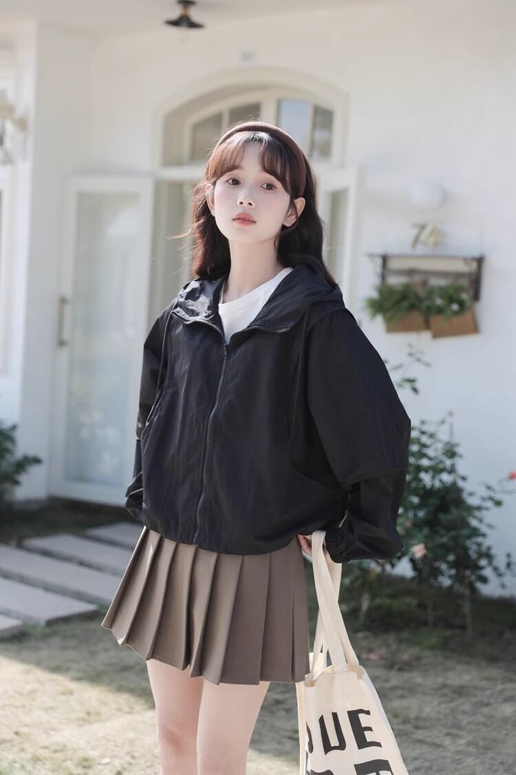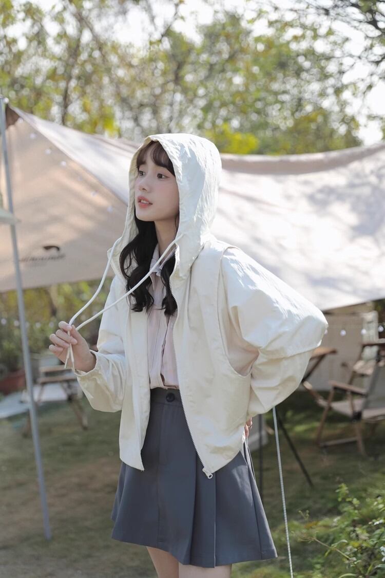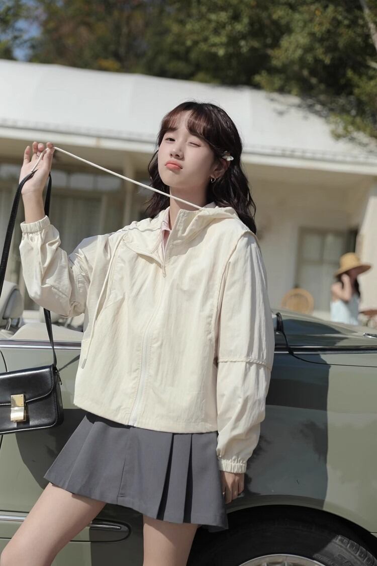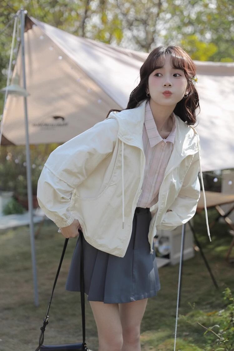 フード付きのデザインがカジュアル感を引き立て、ポケット付きで実用性も兼ね備えています。