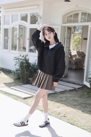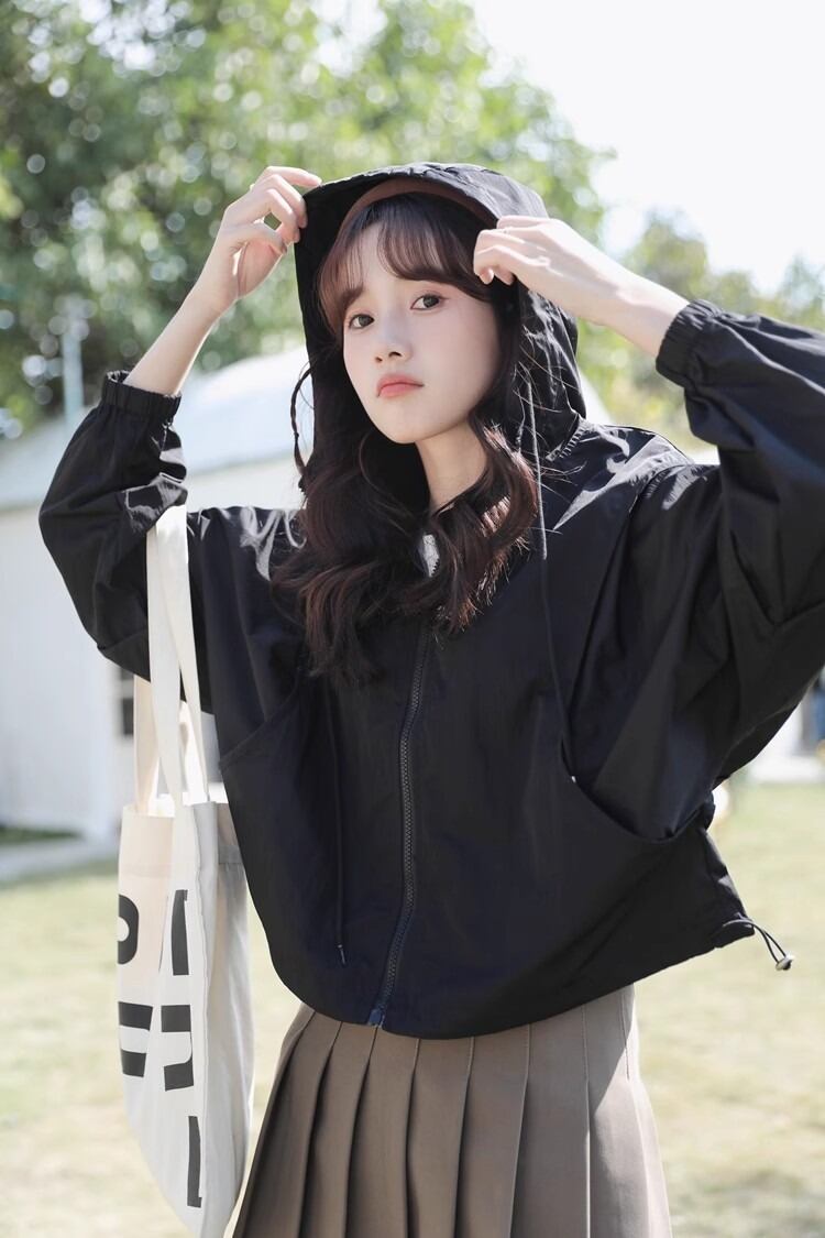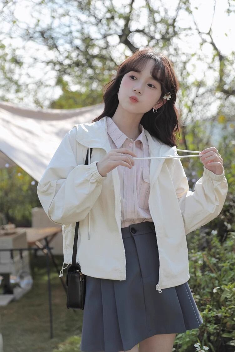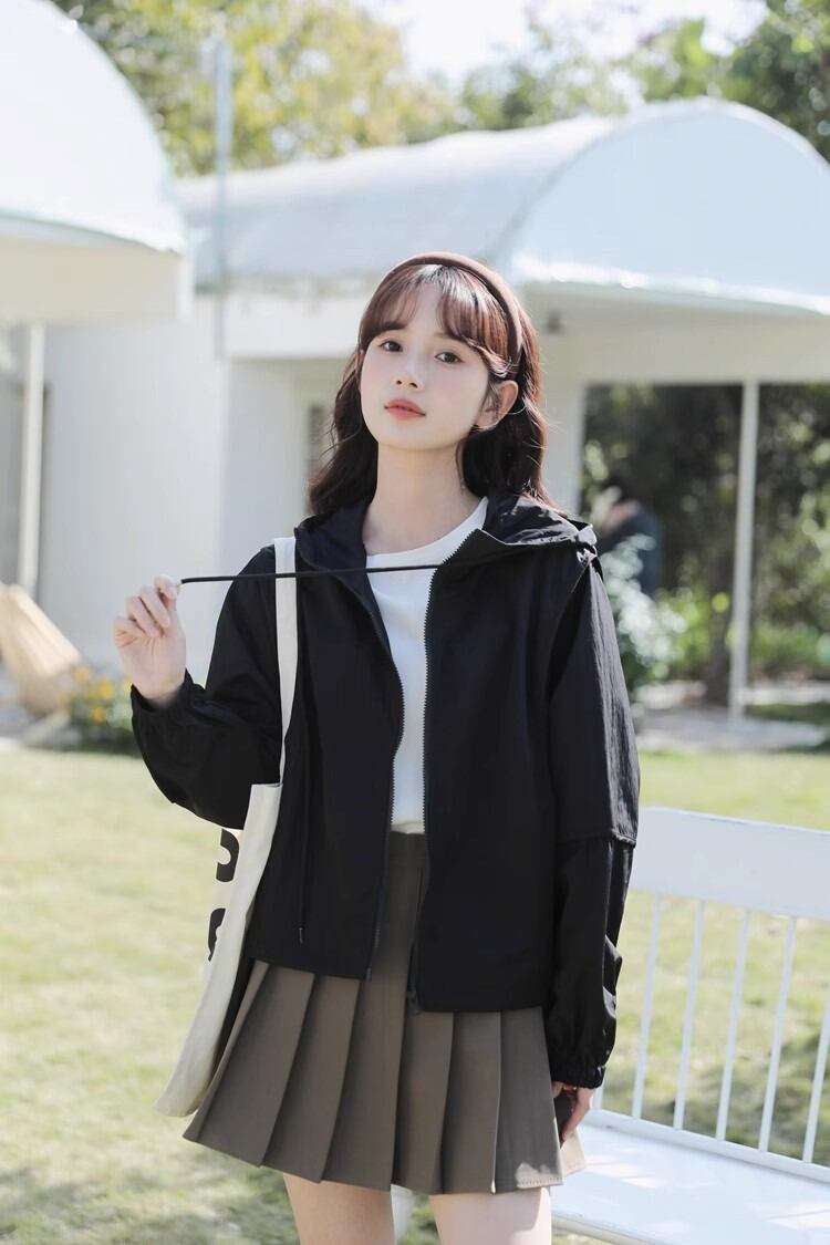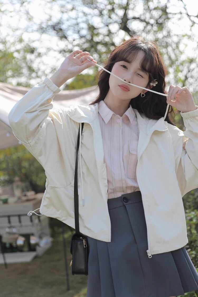 フード付きのデザインがカジュアル感を引き立て、ポケット付きで実用性も兼ね備えています。