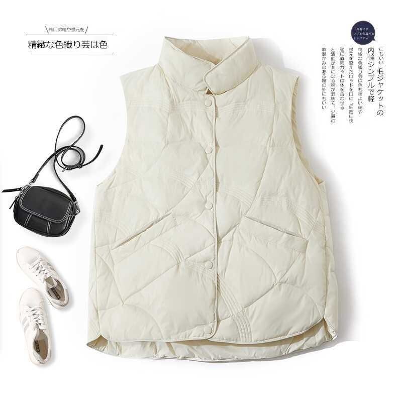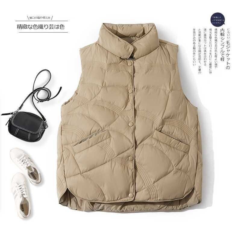 ハイネックデザインとノースリーブスタイルが特徴のこのジャケットは、秋冬のコーディネートにぴったり。