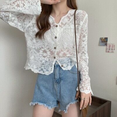 大人可愛いとフェミニンな雰囲気を演出する、素敵なカーディガンが登場しました!前開きデザインでレースデザインが女性らしさを引き立てます。ストレートなシルエットと透け感のある薄手素材で、春夏のデートやお出かけに最適です。