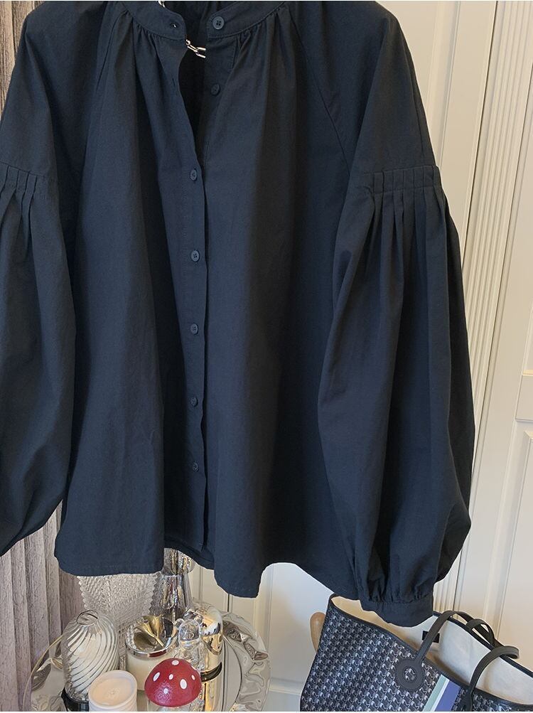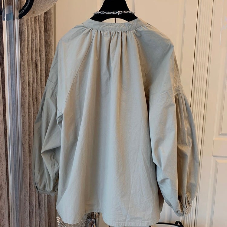 ゆったりとしたランタンスリーブが特徴で、華奢な印象を与えます。