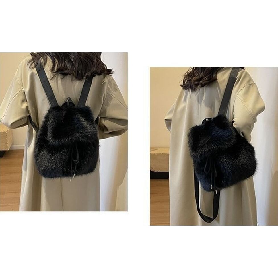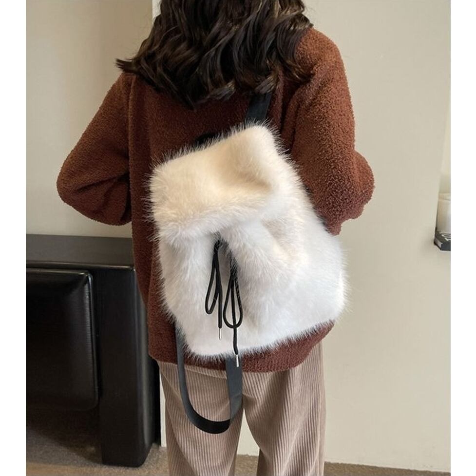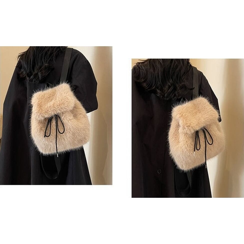 ファーデザインのリュックサック。ころんとした可愛いフォルムで絶妙な曲線デザインが女性らしさを落とし込み服がスマートに見える。華奢なシルエットを崩さず際立たせたりシャツやジャケットにほどよいカジュアル感を加えたり日常づかいしやすい