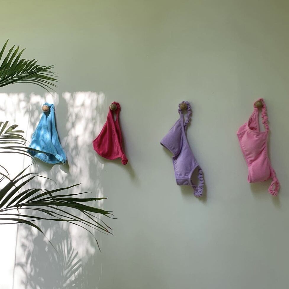 ポップな色合いがかわいいセパレートタイプのバイカラースイムウェア。モコモコ素材のトロピカルな風合いと開放的な肌見せデザインが魅力。トレンド感のある一味違ったビーチルックが楽しめます