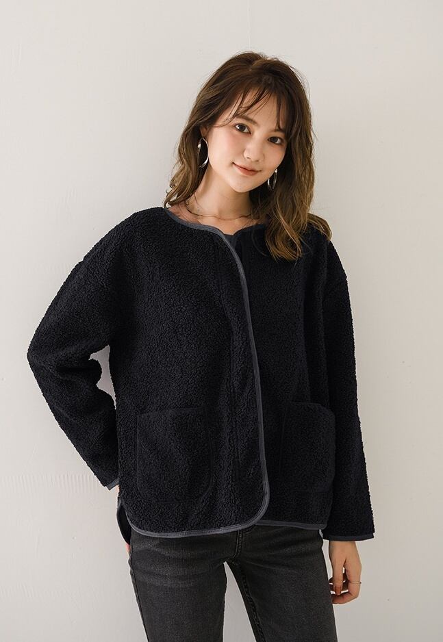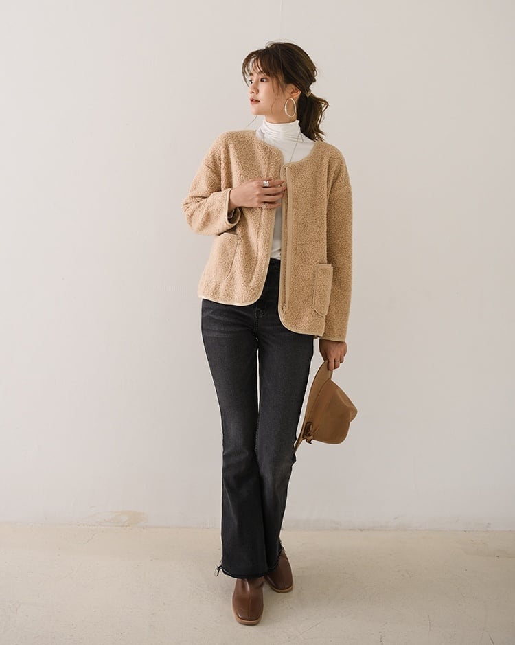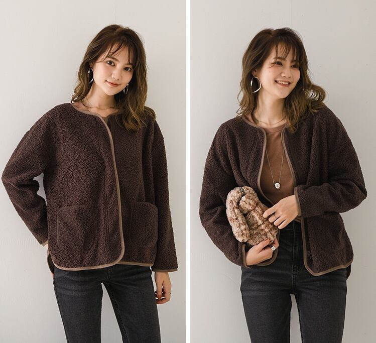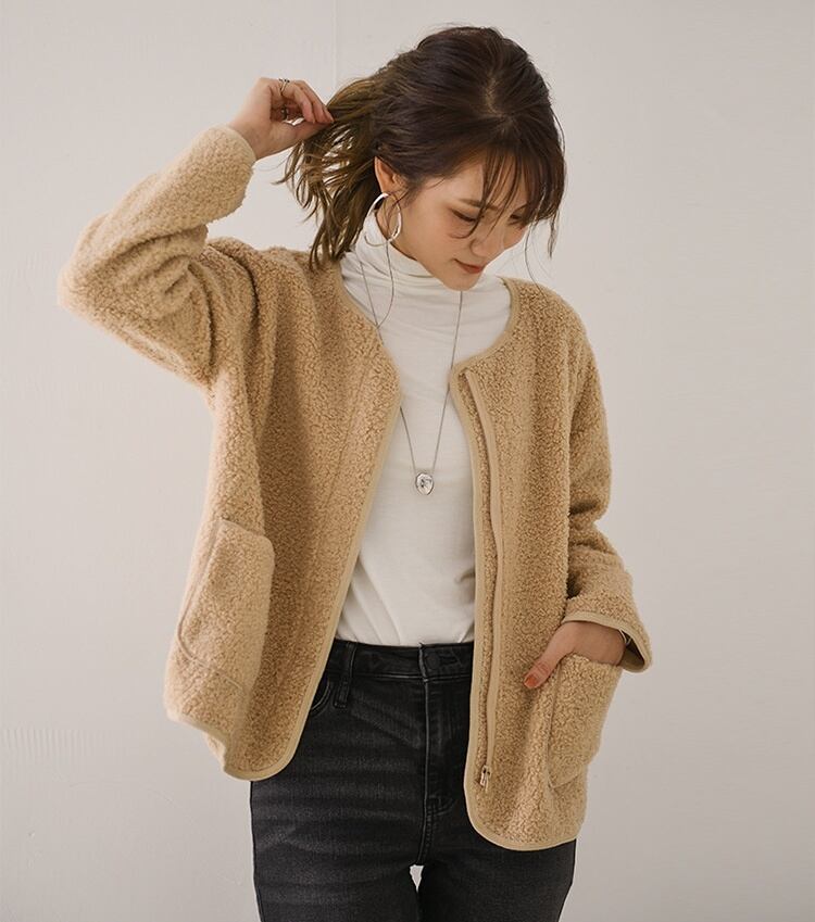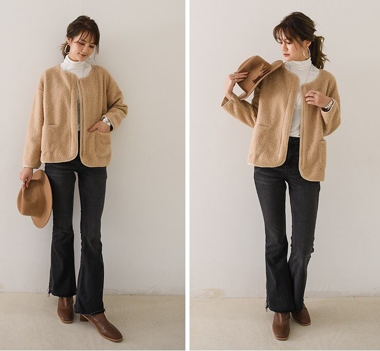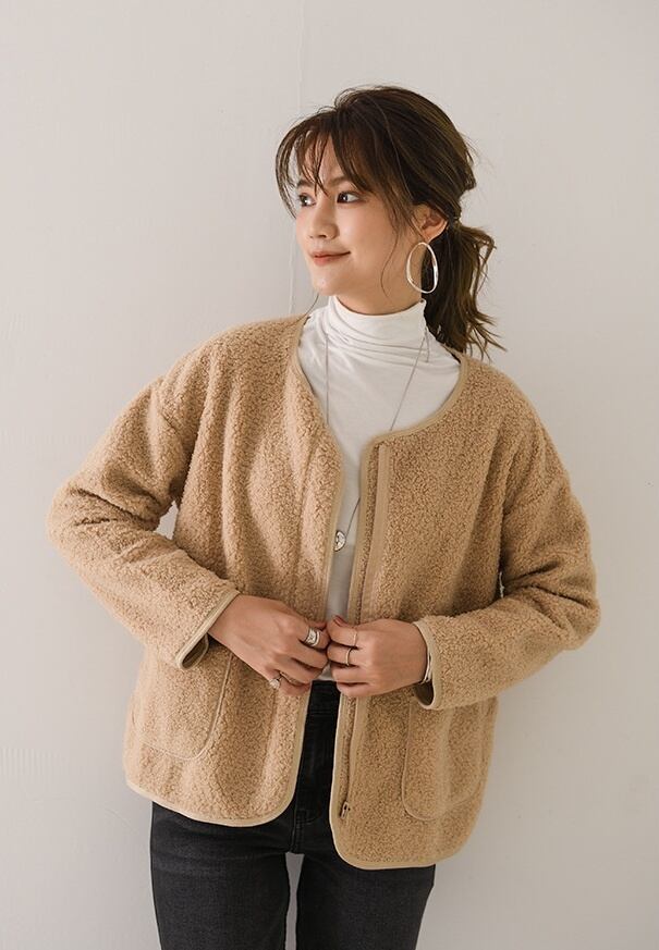 秋冬に活躍するノーカラーボアジャケットが登場!