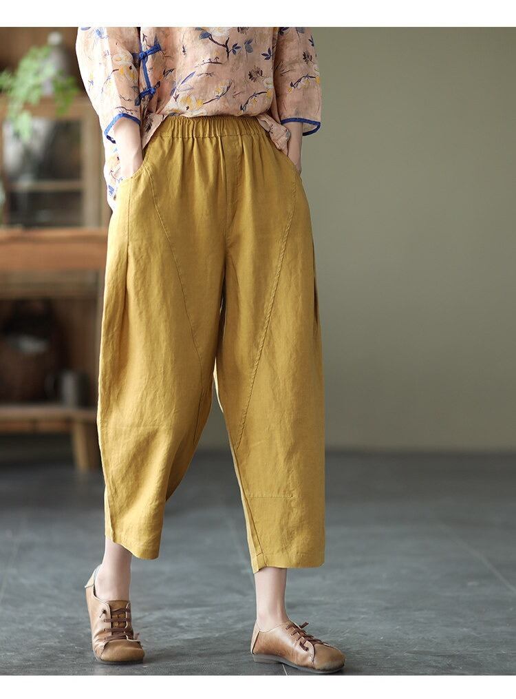 ハイウエストとウエストゴム仕様で、快適な穿き心地とスタイルアップを実現。