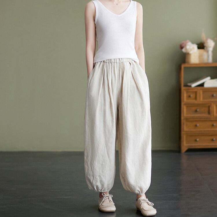 シンプルでありながら、女性らしさを引き立てるテーパードパンツのご紹介です!ふっくらとしたシルエットと、ゆったりとした着心地で、リラックスしたいおうち時間やお出かけにもぴったりです。ポケットも付いているので、実用性も兼ね備えています。