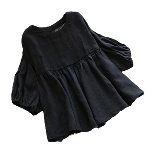 7分袖でクルーネック、襟なしのシンプルなデザインはカジュアルシーンにもビジネスシーンにもマッチします。