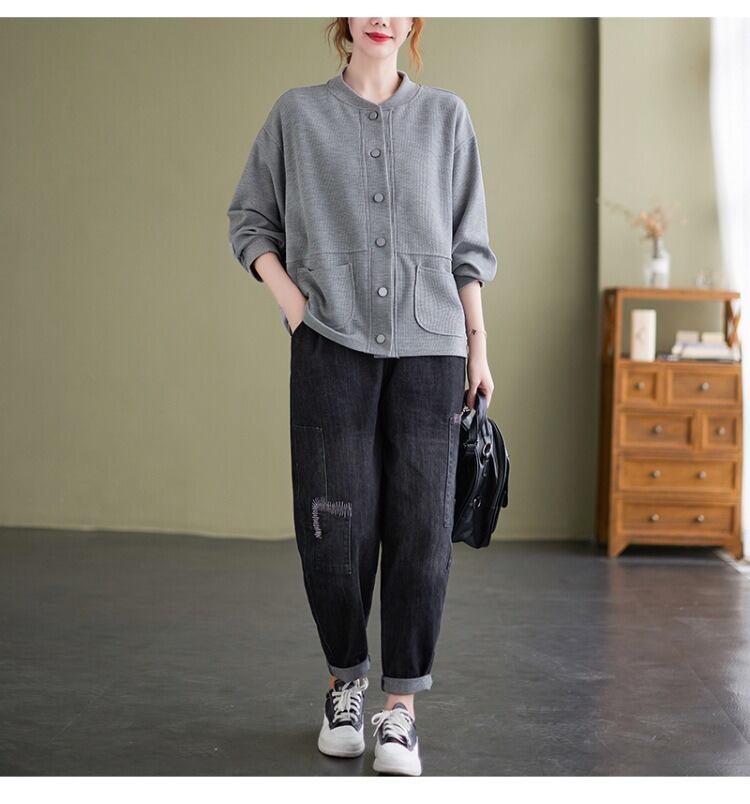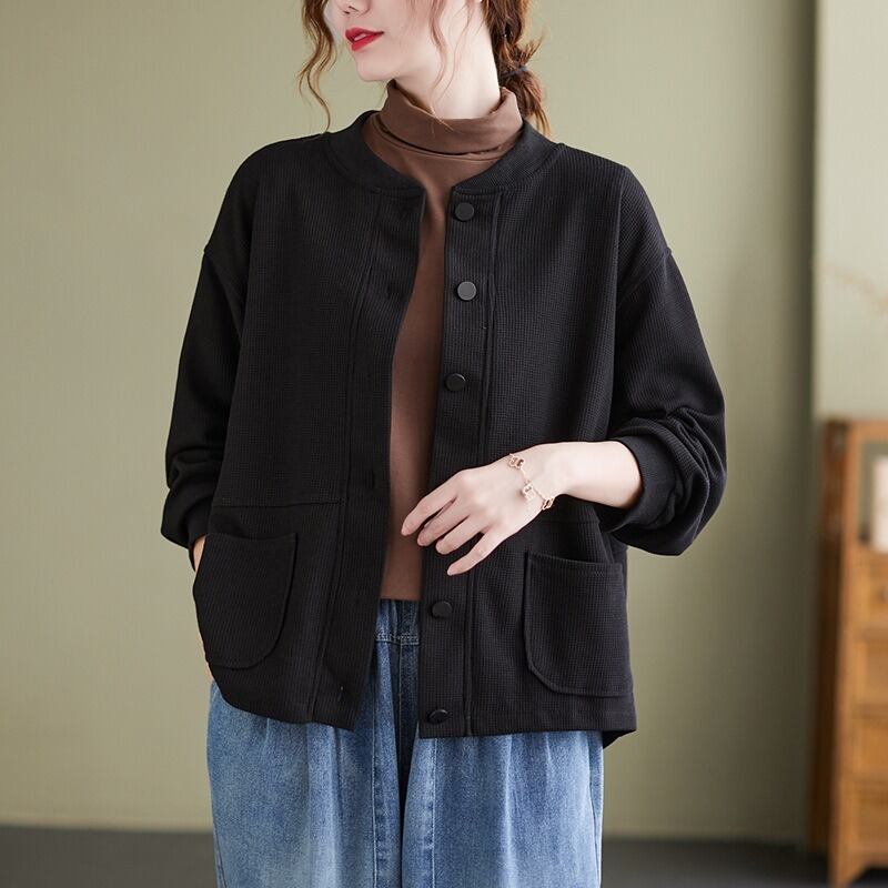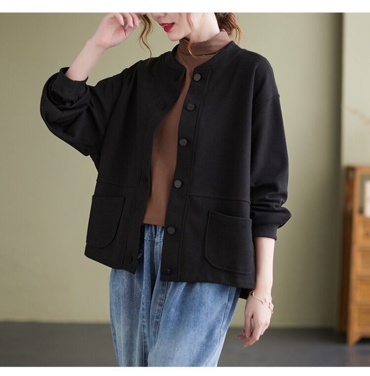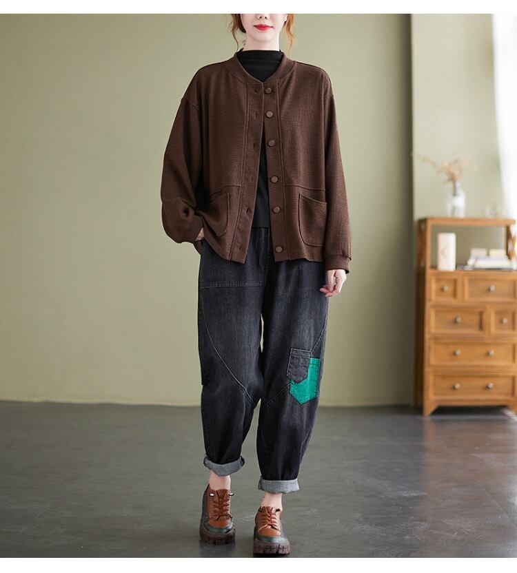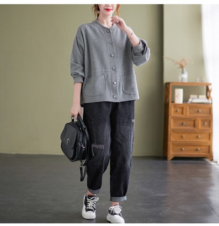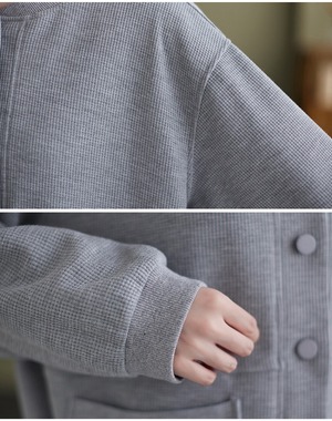 シンプルでありながらおしゃれな印象を与える、前開きのジャケットカーディガン。 ラウンドネックと長袖のデザインで、季節の変わり目にも さらっと羽織ることができるアイテムです。 着やすさと抜け感を持ち合わせたデザインは、 カジュアルからきれいめスタイルまで幅広く活躍し、 ママやOL、学生の通勤・デートシーンにもぴったり! ポケットも付いているので、使い勝手も抜群です。