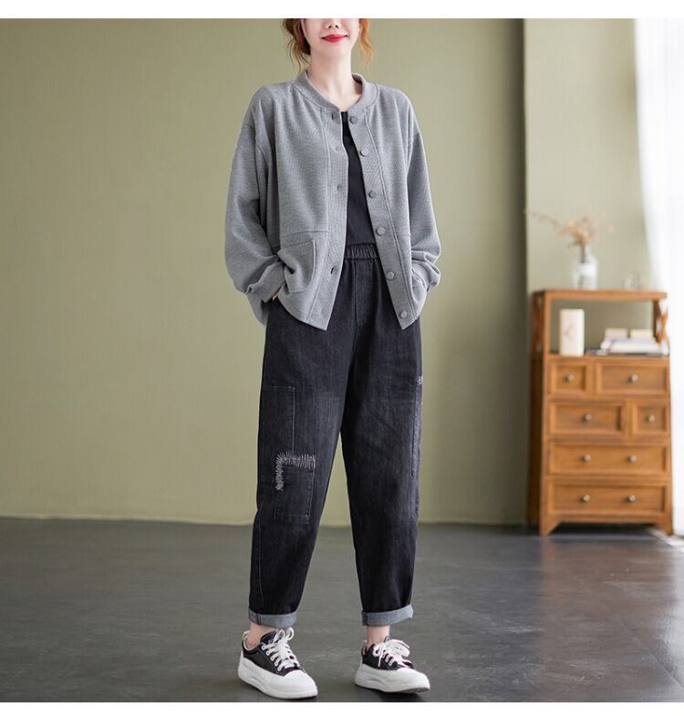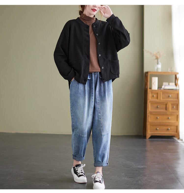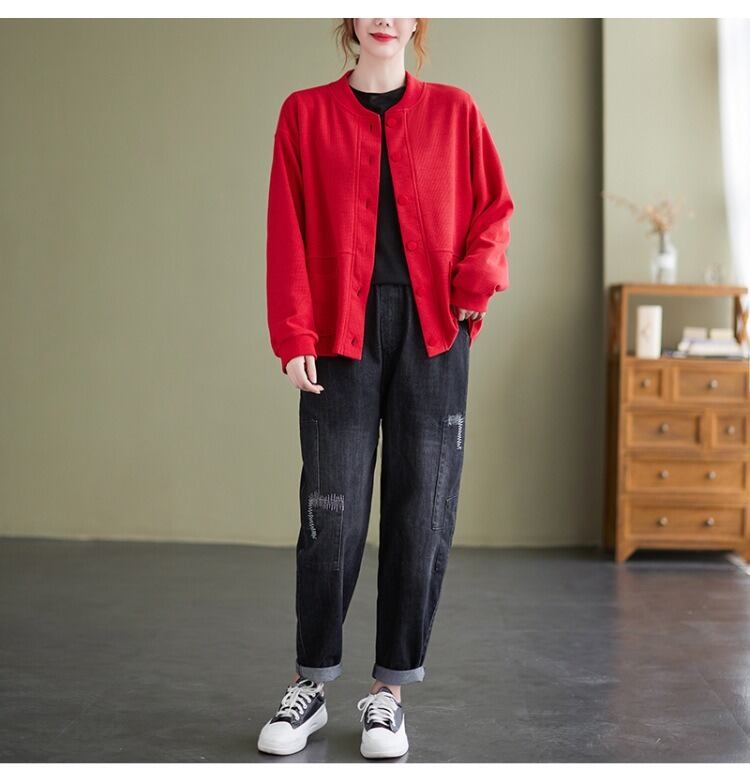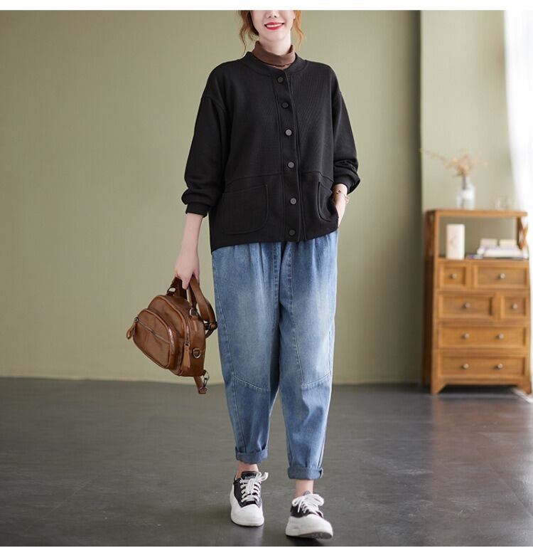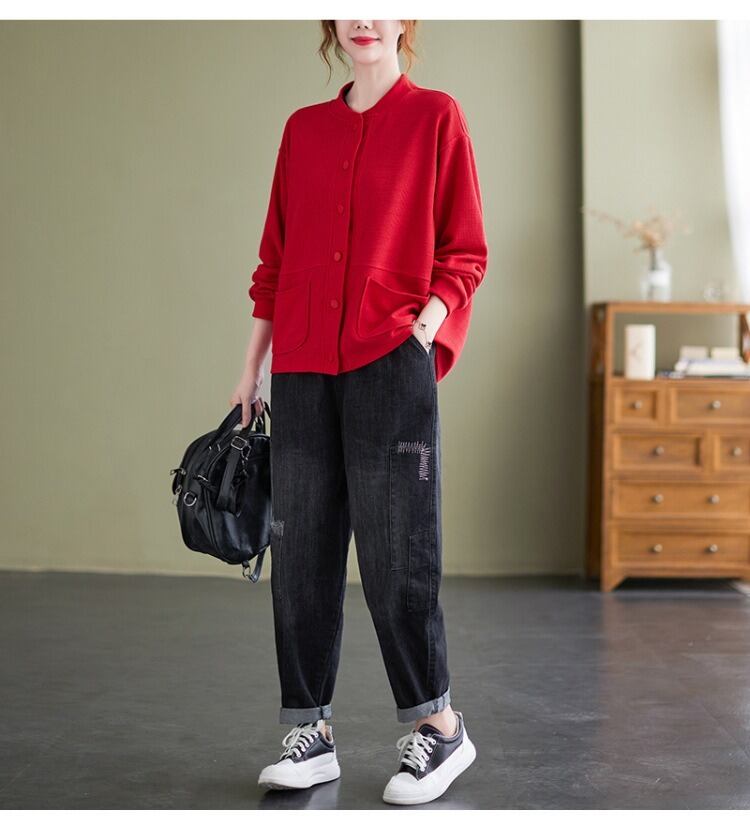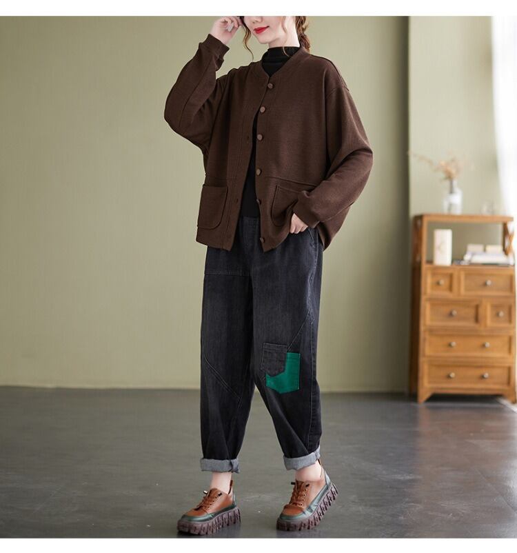 シンプルでありながらおしゃれな印象を与える、前開きのジャケットカーディガン。 ラウンドネックと長袖のデザインで、季節の変わり目にも さらっと羽織ることができるアイテムです。 着やすさと抜け感を持ち合わせたデザインは、 カジュアルからきれいめスタイルまで幅広く活躍し、 ママやOL、学生の通勤・デートシーンにもぴったり! ポケットも付いているので、使い勝手も抜群です。