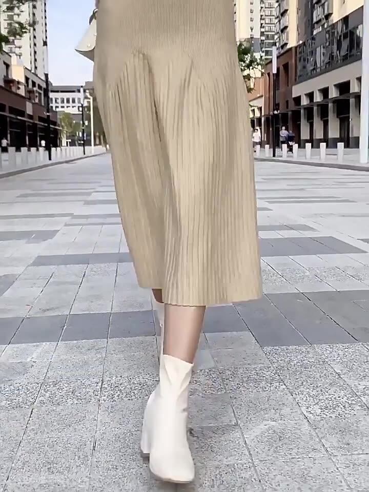 膝下のミモレ丈とAラインシルエットが体型を美しくカバーし、こなれた雰囲気を演出します。