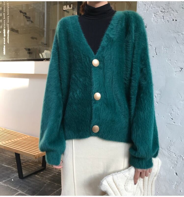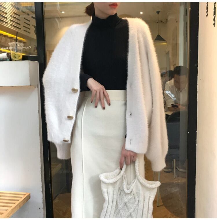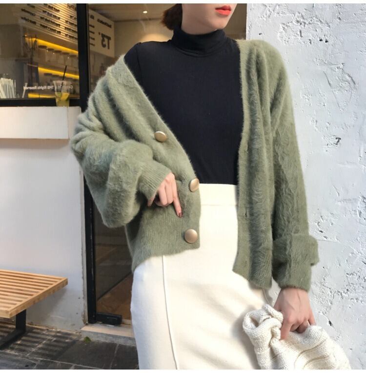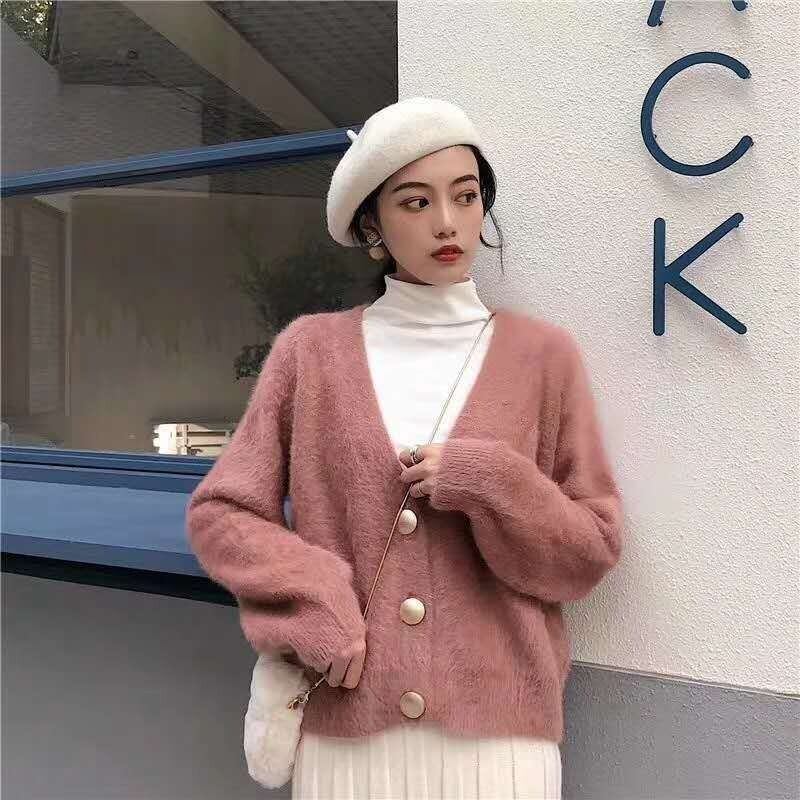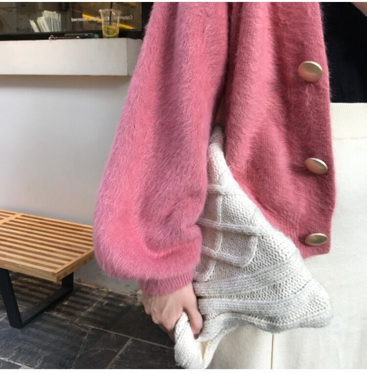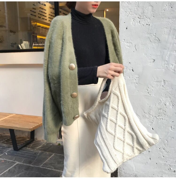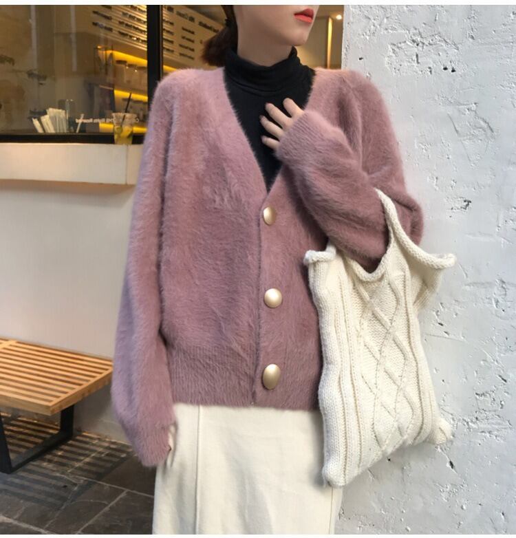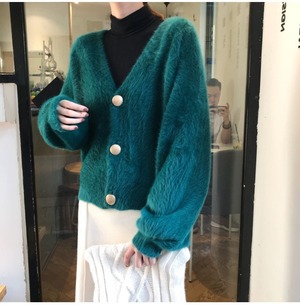大人可愛い印象を与えるレディースニットカーディガンです。