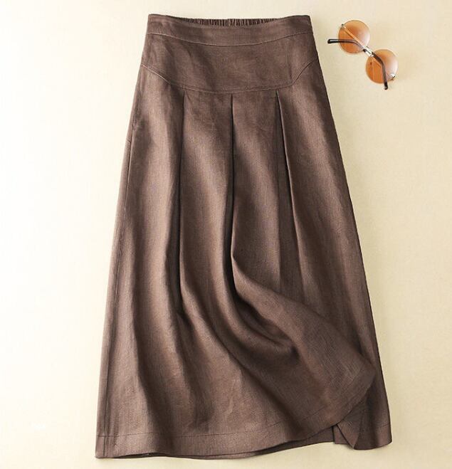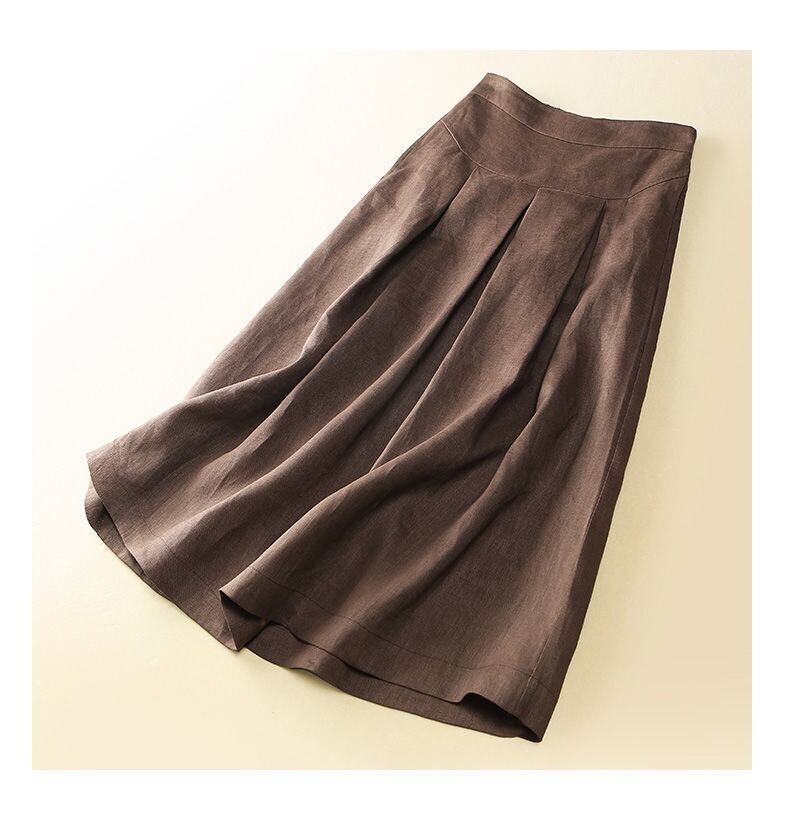 膝下のミモレ丈とAラインシルエットが体型を美しくカバーし、上品かつこなれた雰囲気を演出します。