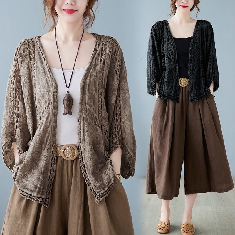薄手のコットン素材で、春夏秋のロングシーズンにぴったりの一枚です。
