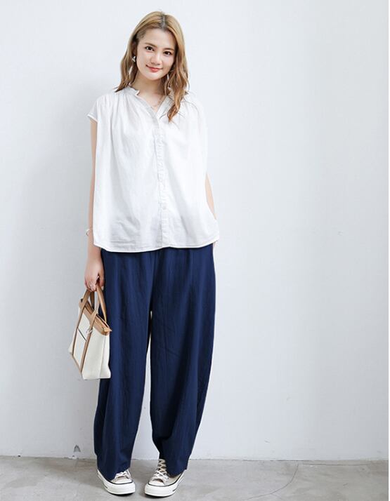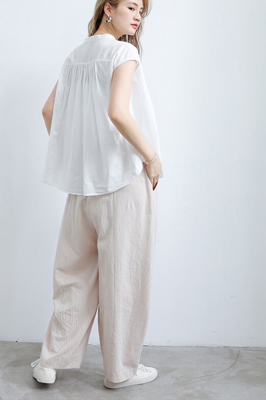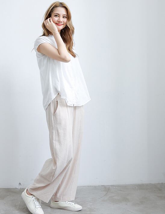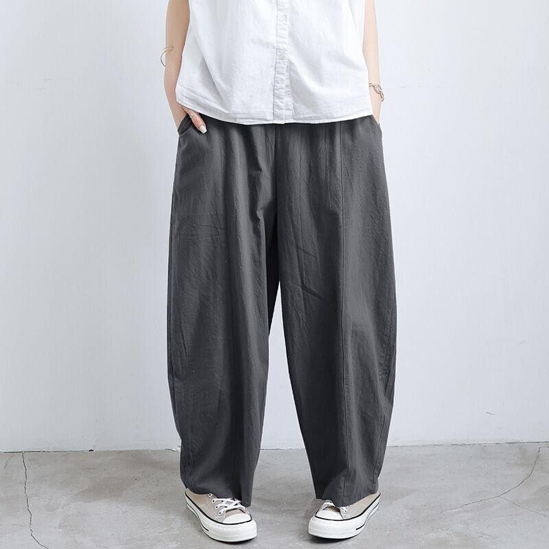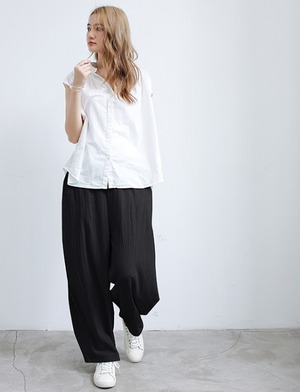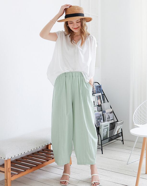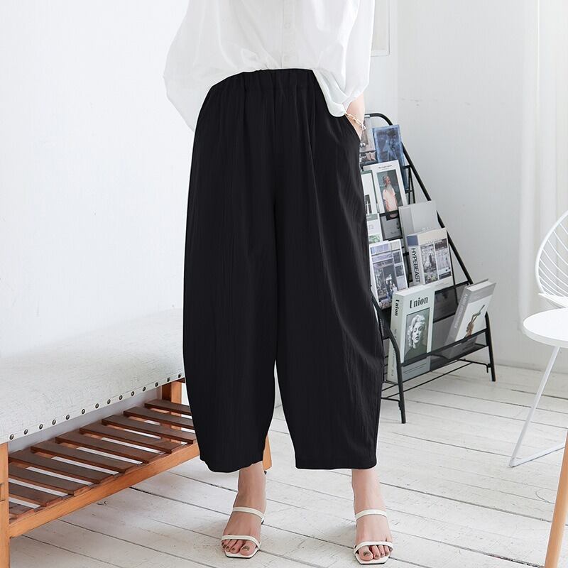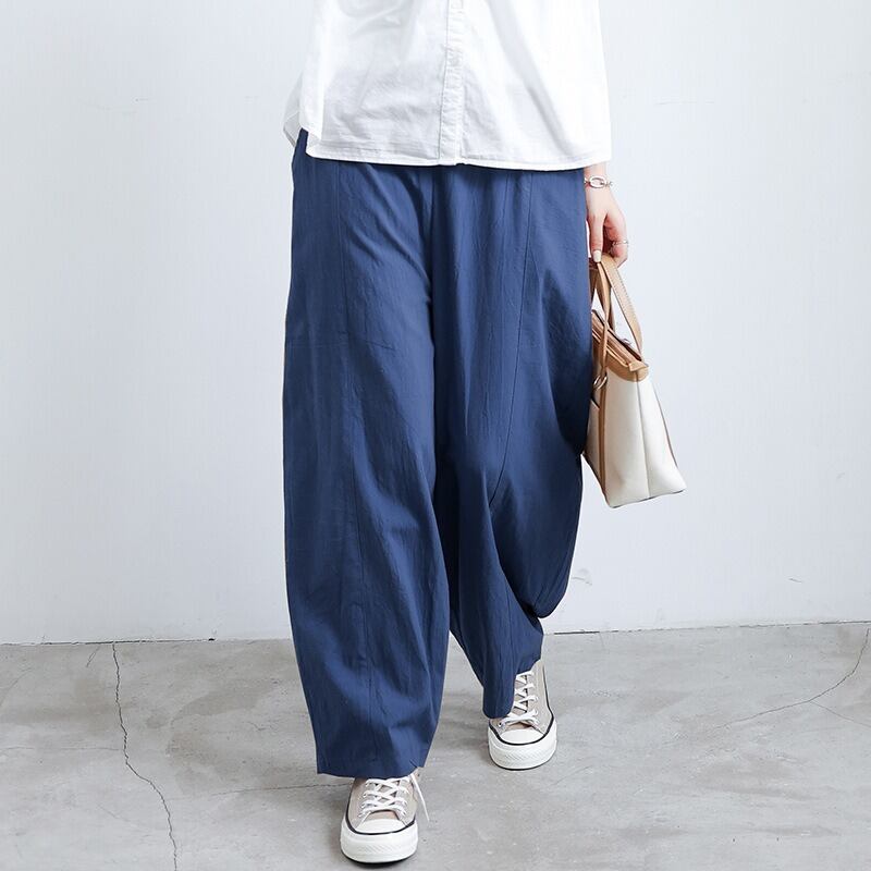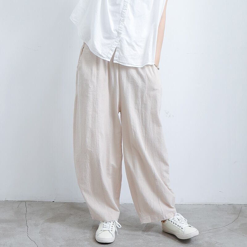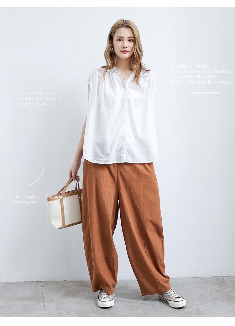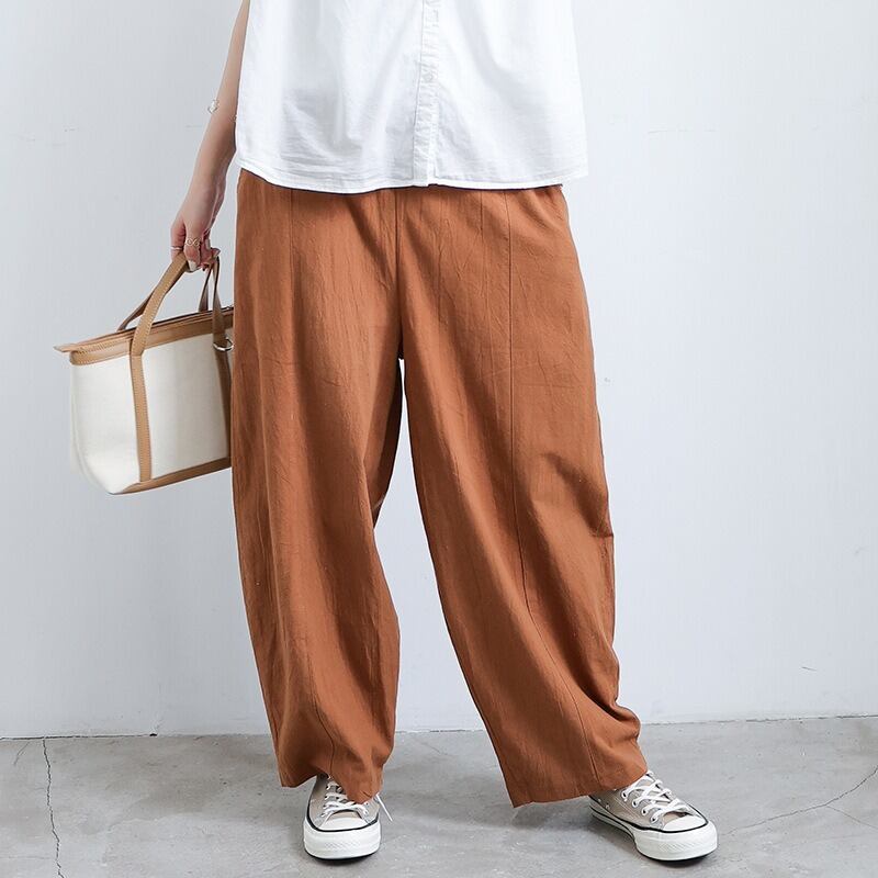 ウエストゴム仕様で、ゆったりとした着心地ながら、体型をカバーしてくれる優れもの。