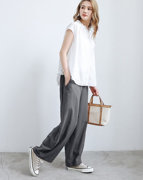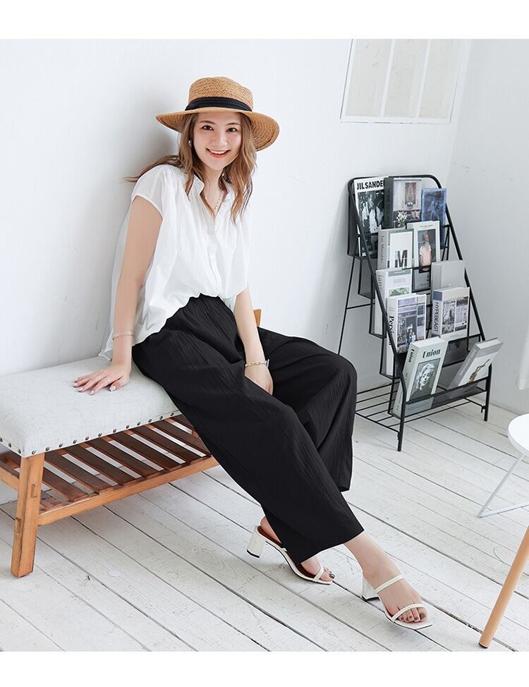 シンプルでありながら、女性の魅力を引き立てるレディースワイドパンツです。