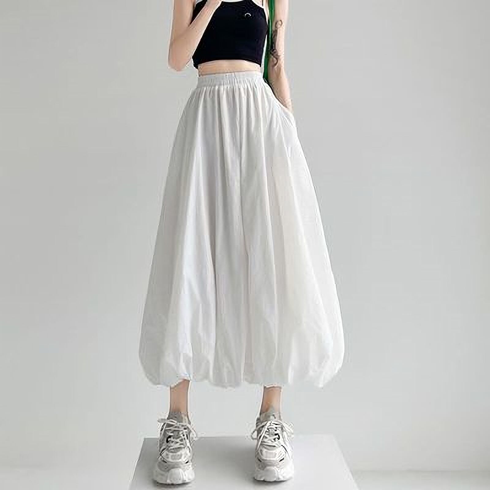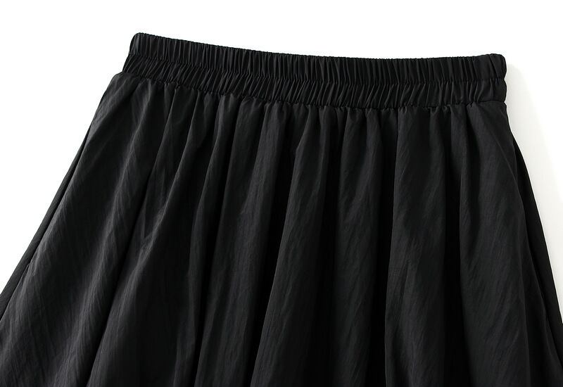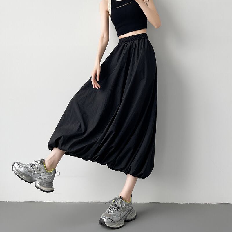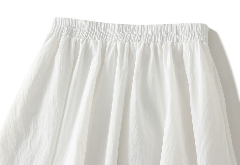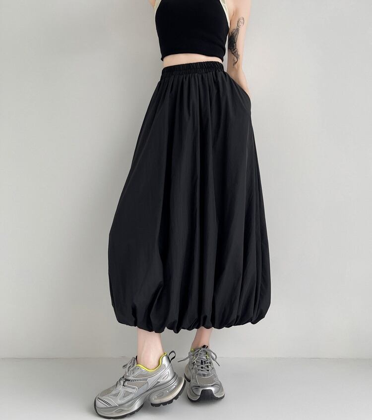 ふわふわとしたシルエットが特徴で、軽やかな動きが魅力的。ポケット付きで機能性も抜群、ウエストゴムで楽ちんに着こなせます。クロップド丈で抜け感をプラスし、低身長さんにも履きやすいスカートとなっています。