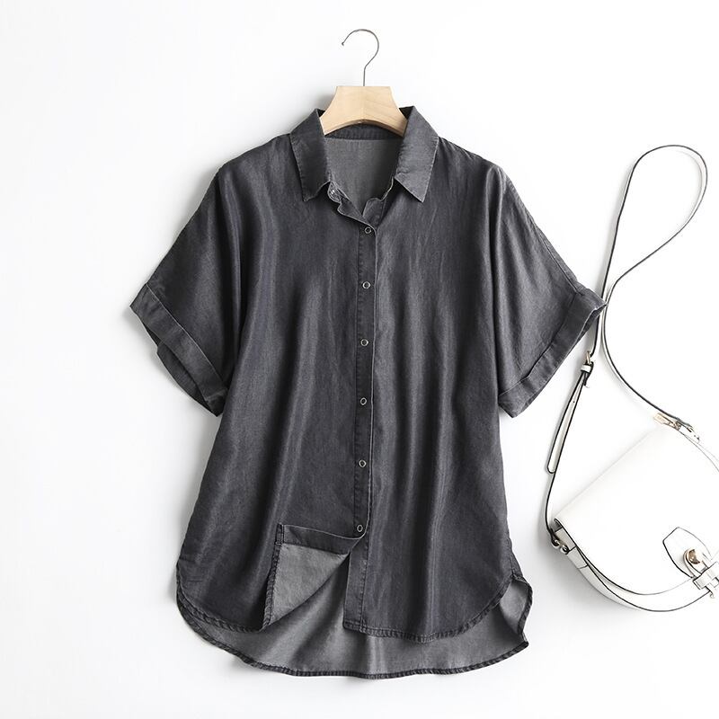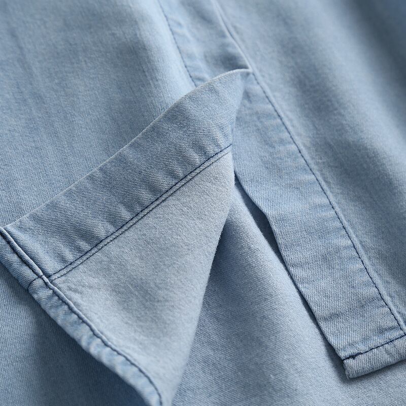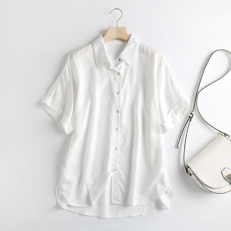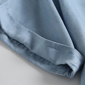 薄手のコットン素材を使用しており、サラッとした肌触りが夏のデイリーユースにぴったり。ワイドなシルエットで、リラックス感のある着こなしが楽しめます。襟付きのデザインは、カジュアルさと上品さを兼ね備え、大人のおしゃれにおすすめです。袖口のロールアップでこなれ感を演出してくれます。