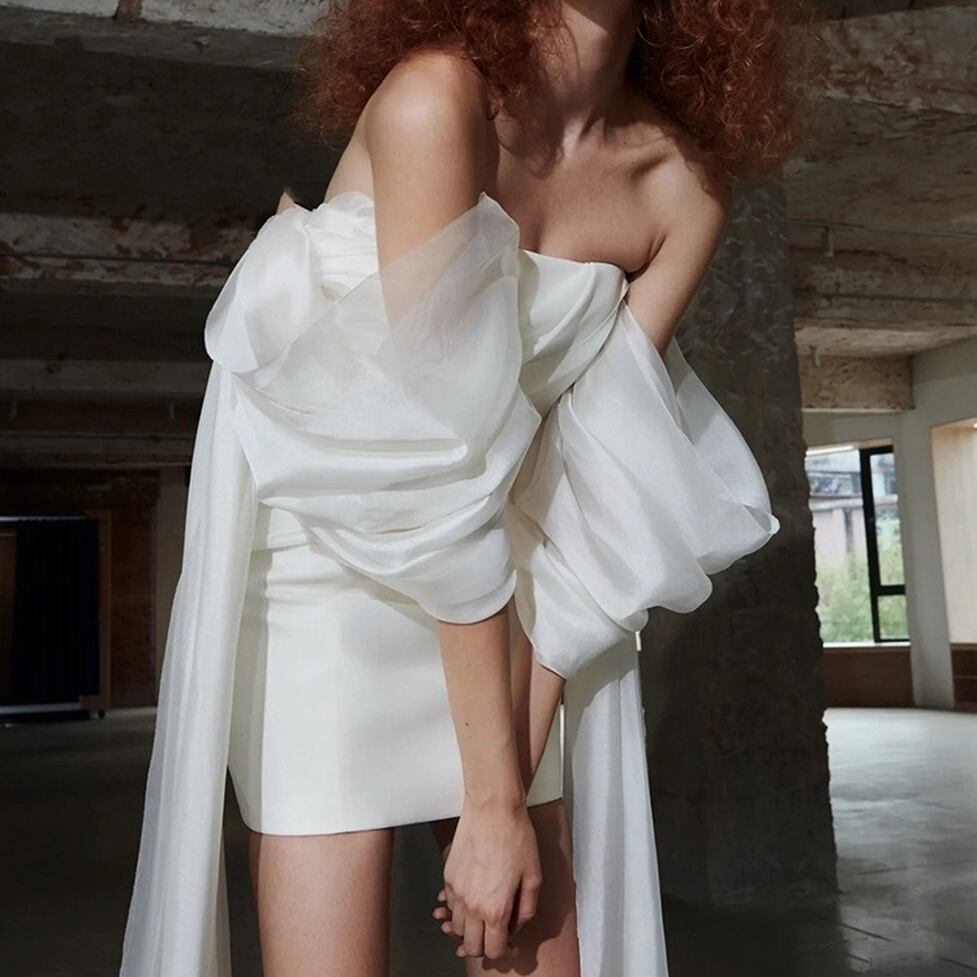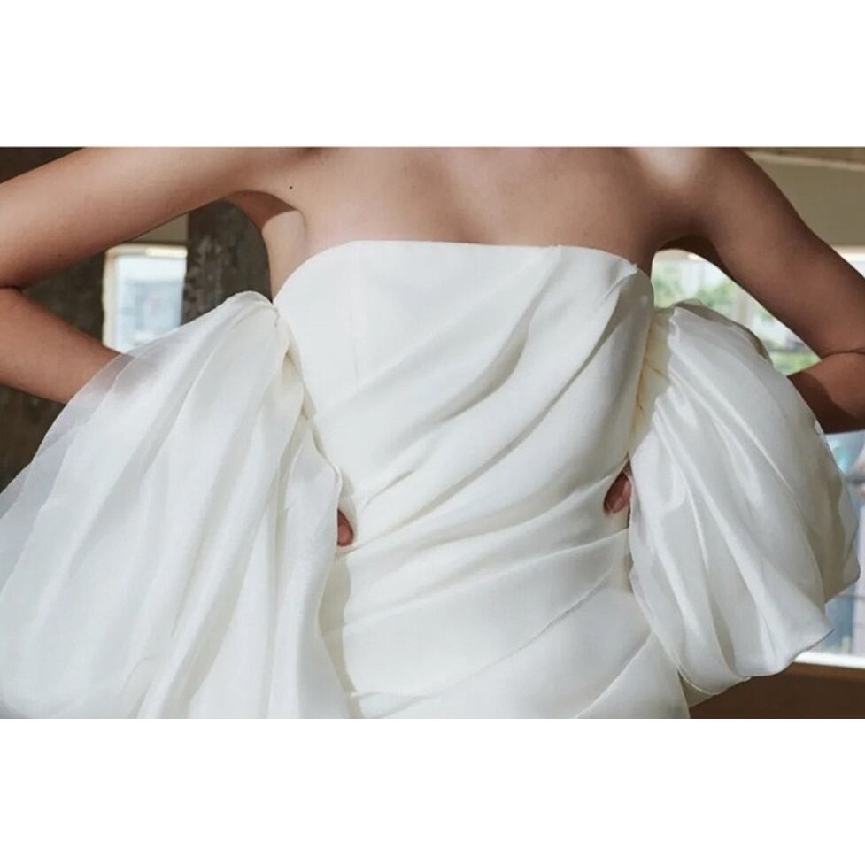 ボリューム袖が存在感を放つミニワンピース。多様なシーンで自分らしさを演出できる魅力的な1着。ボリュームのあるスリーブとタイトなギャザーシンプルでありながらも洗練された印象を与えます。エレガントさと抜け感を備えた美しい仕上がりです。