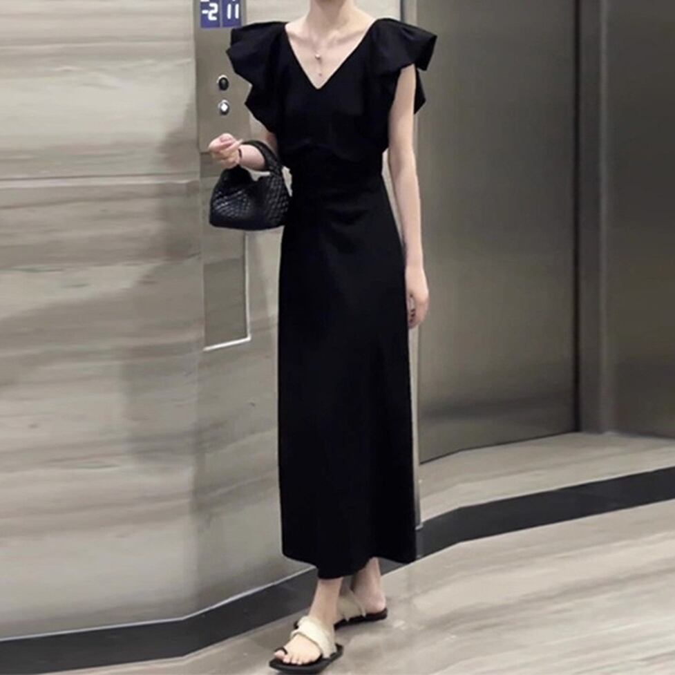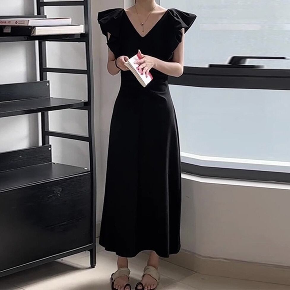 女性らしい雰囲気のワンピースのご紹介です。フリルスリーブとフレアに広がるラインがフェミニンな印象で体型をカバーしながら綺麗なシルエットが完成します。ゆったりとしたフィット感とロング丈で気軽に着用でき様々なシーンで大活躍のアイテムです。