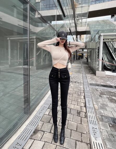 スタイルアップを叶える、タイトシルエットのレディースGパン。ハイウエスト仕様で脚長効果を演出し、シンプルながらも洗練された存在感を放ちます。ポケット付きで実用性も兼ね備え、デイリーから特別なお出かけまで幅広く活躍。