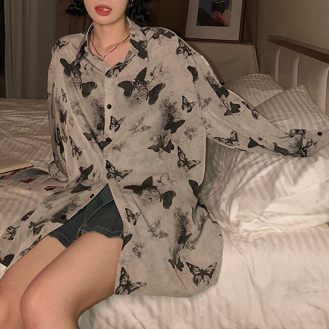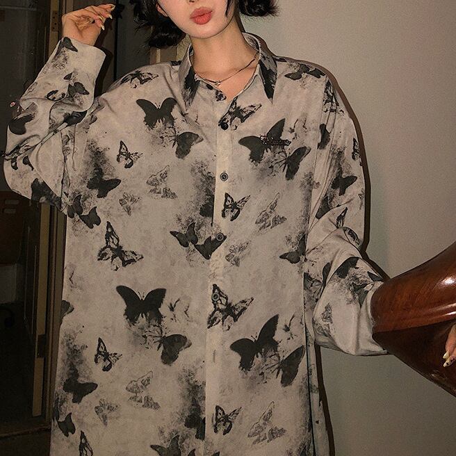 モノトーンで仕上げた蝶々柄でハイセンスな印象に。