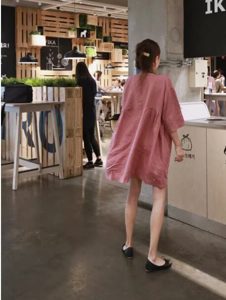 軽やかなフレアシルエットが魅力の膝上丈ワンピース。Uネックと5分袖のバランスが女性らしい抜け感を演出し、大人可愛いガーリースタイルを叶えます。シンプルな無地デザインながらも、Aラインの広がりがロマンティックな雰囲気をプラス。