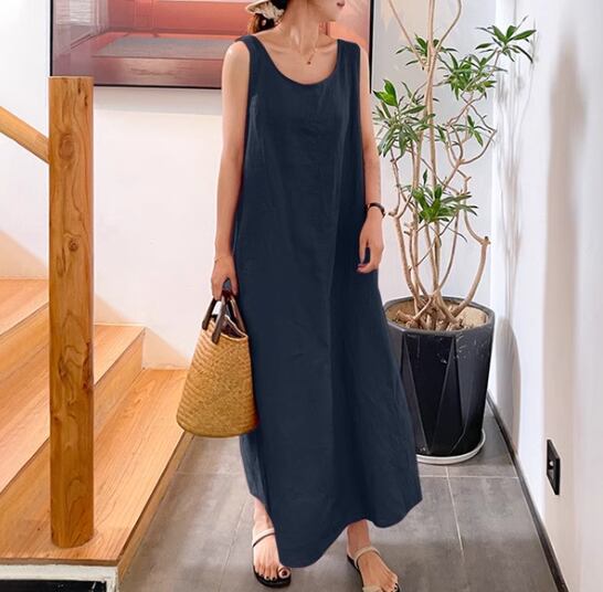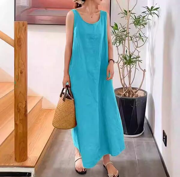 ゆったりとしたオーバーサイズシルエットが魅力のロングワンピース。ラウンドネックとノースリーブのデザインで、春夏のお出かけを軽やかに楽しめます。シンプルながらも存在感があり、1枚でコーデが完成する便利なアイテムです。
