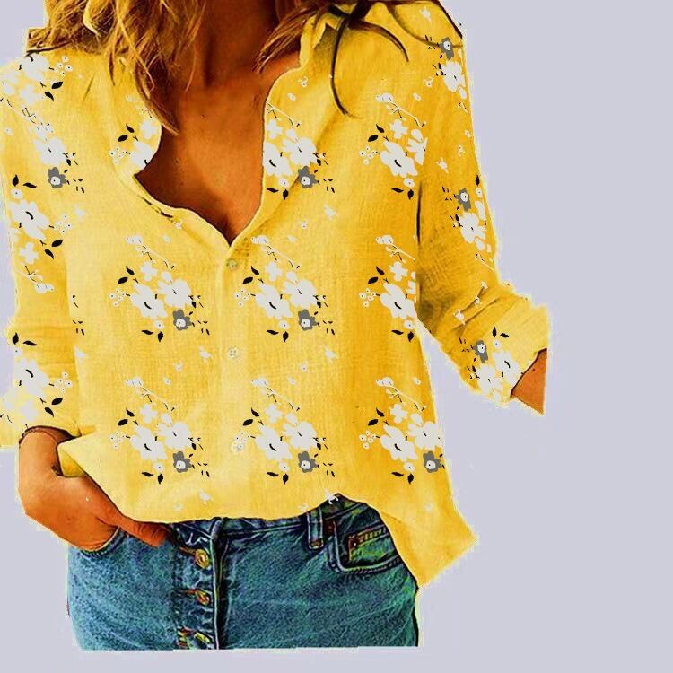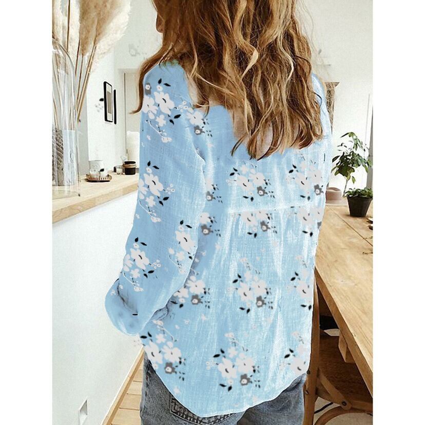 華やかな花柄が目を引く、前開きタイプのレディースシャツブラウスです。