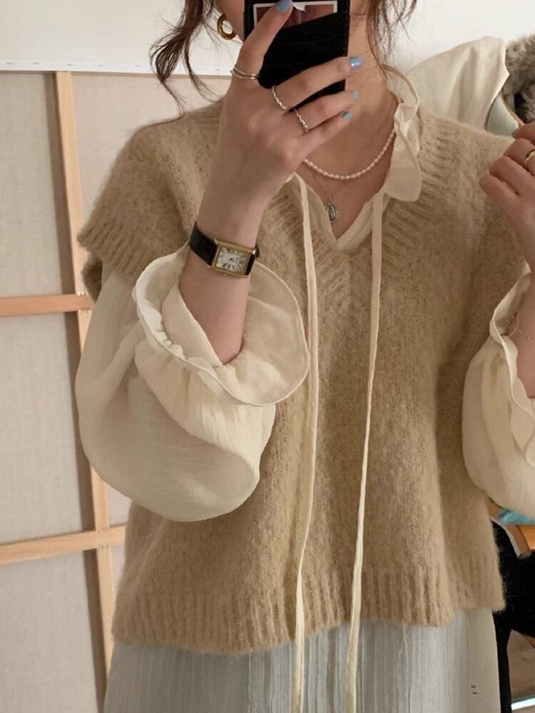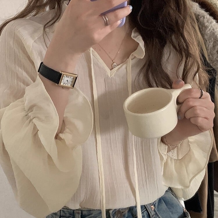 キャンディスリーブとフリルのスタンドカラーデザインが女性らしさを引き立てる長袖ブラウス。オーバーサイズシルエットにリボンのディテールをプラスし、抜け感のあるこなれスタイルを叶えます。