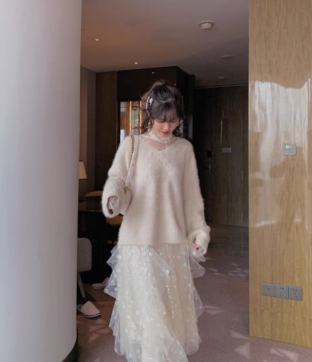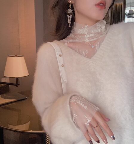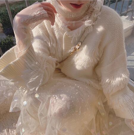 やわらかな透け感がフェミニンな印象を引き立てる、長袖タートルネックトップス。首元をすっきりと包み込み、大人可愛い雰囲気を演出しながらもシンプルで着回しやすい一枚です。