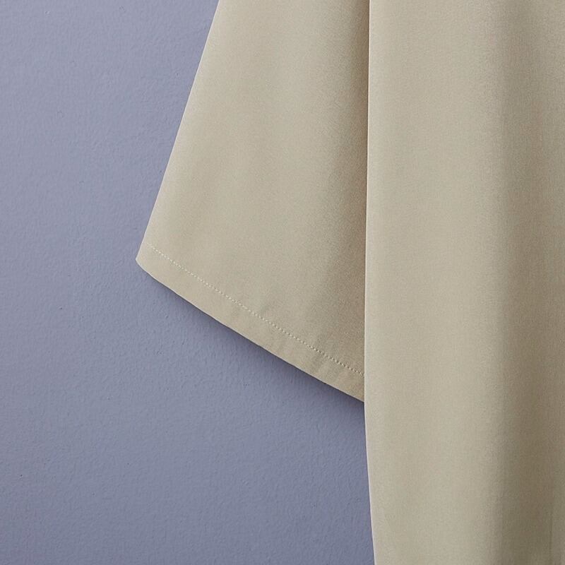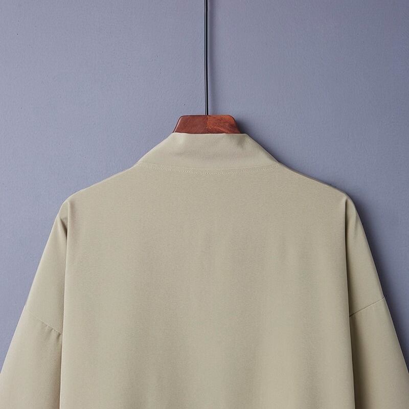 前開きデザインとVネックが上品さを演出し、ミディアム丈の7分袖は、春夏秋のロングシーズンにぴったり。