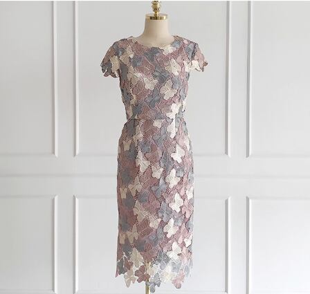 女性らしさを引き立てる、膝丈タイトワンピース。半袖とラウンドネックのシンプルなデザインに、ウエストマークを施すことで美しいシルエットを演出し、清楚でありながら都会的な印象を与えます。