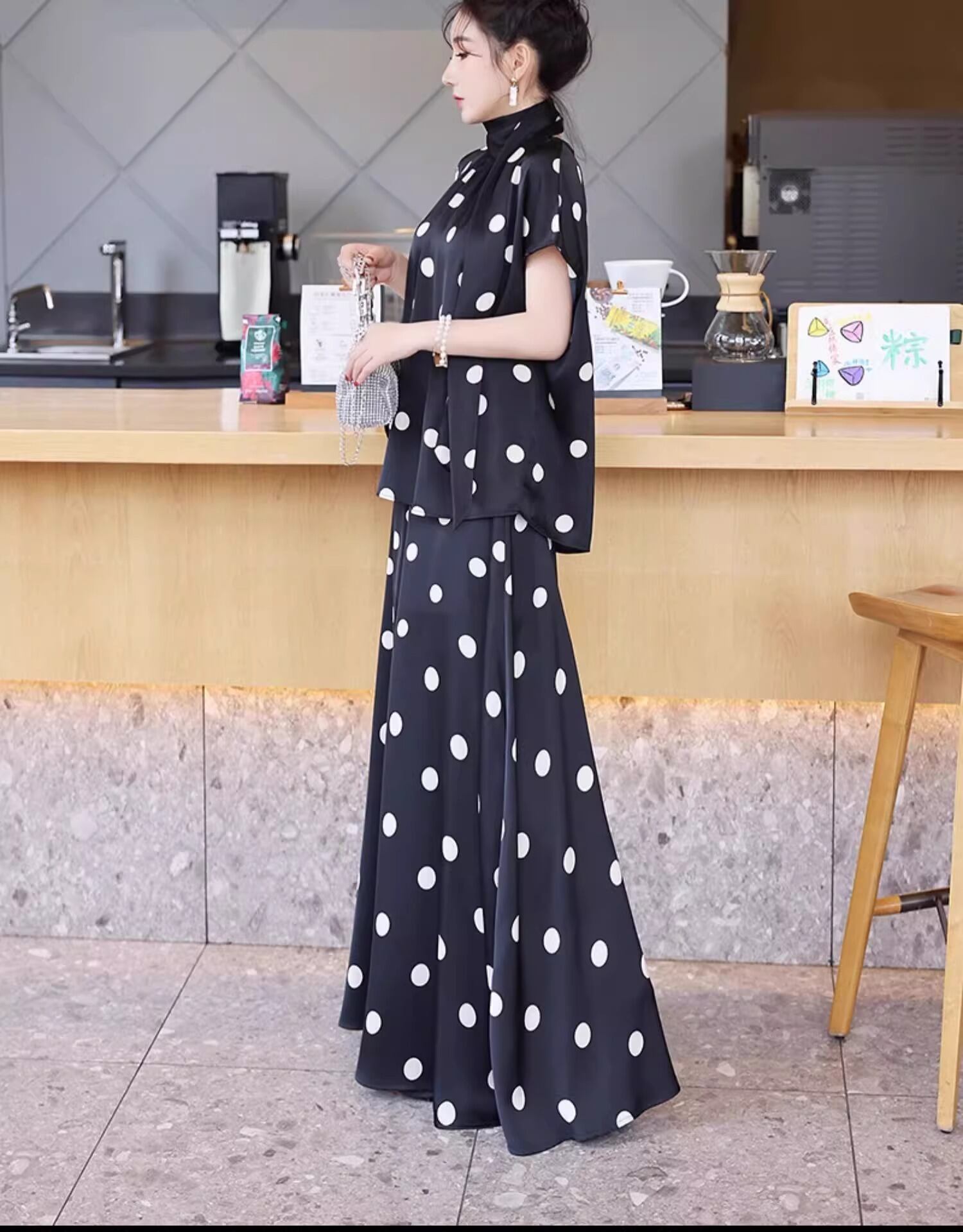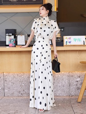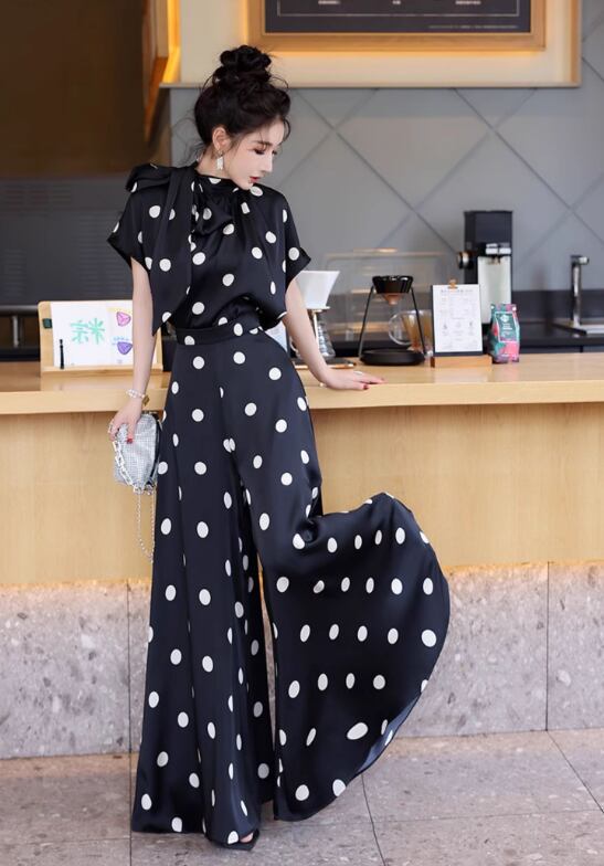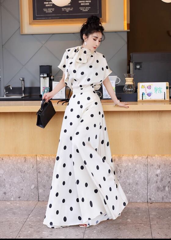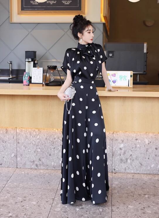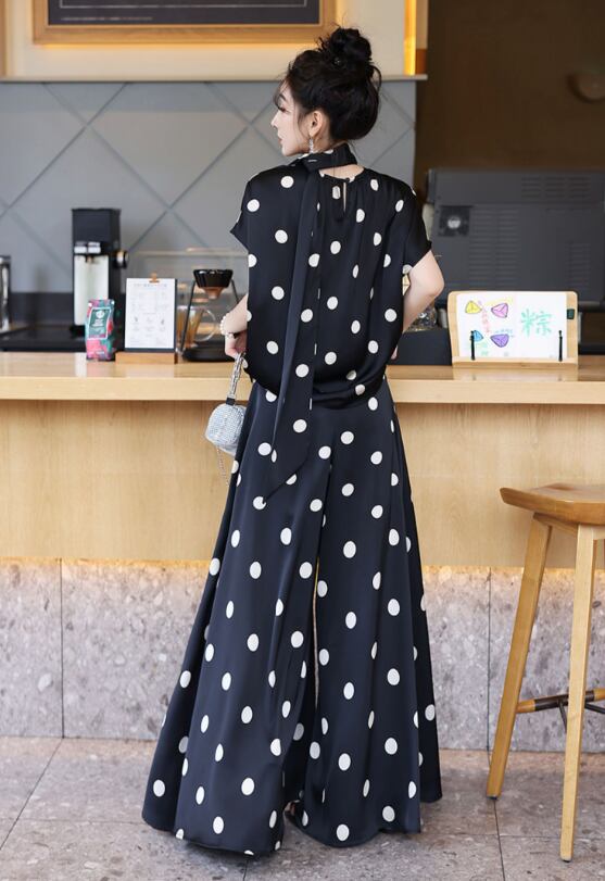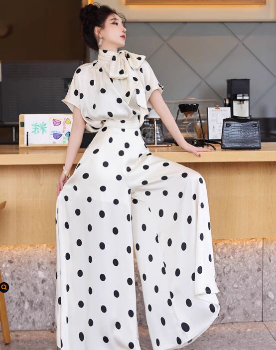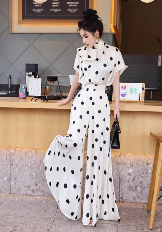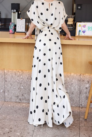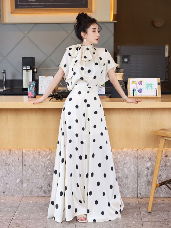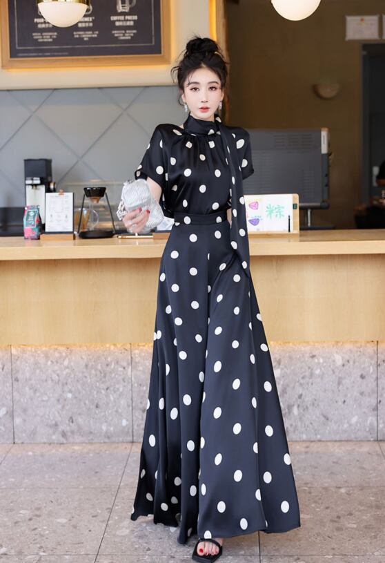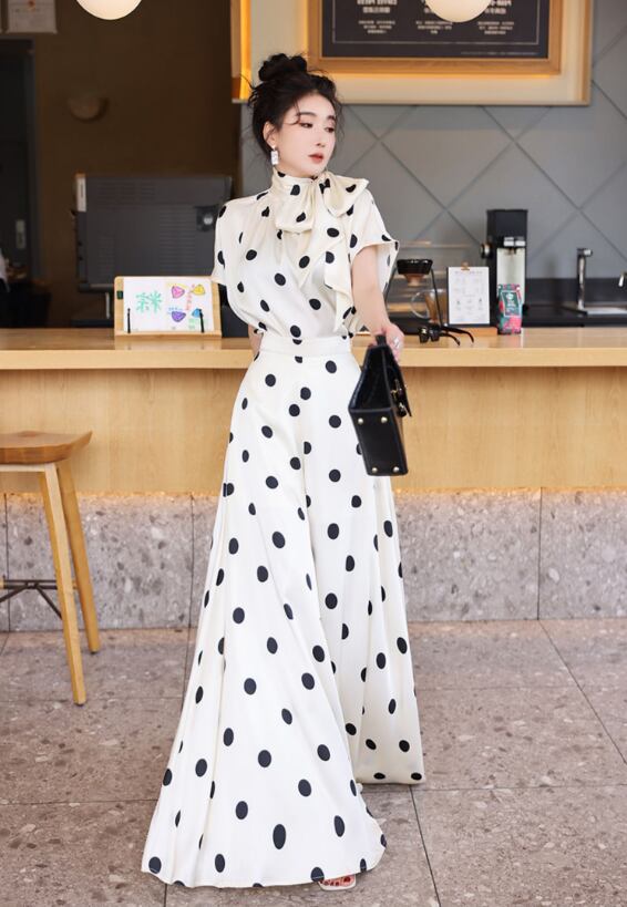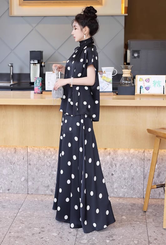 薄手素材なので、春夏の軽やかなコーディネートにぴったり!おしゃれなドット柄が、カジュアルながらも上品さを演出し、普段使いからお出かけまで幅広いシーンで活躍します。