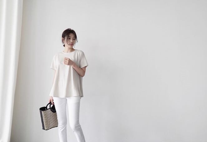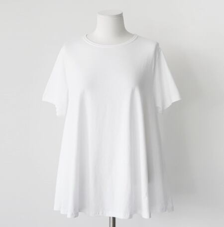 柔らかなフレアシルエットが魅力の半袖トップス。クルーネックが首元をすっきり見せ、シンプルながらも抜け感のあるデザインで大人カジュアルを叶えます。