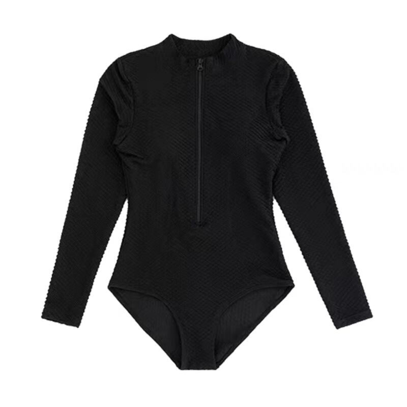 ラッシュガードとしても活躍できる長袖仕様で、紫外線対策もしっかり。海やプールはもちろん、リゾートや旅行、温泉でも活躍する万能アイテムです。