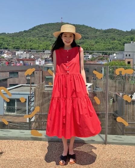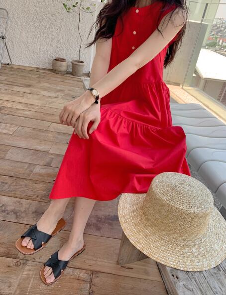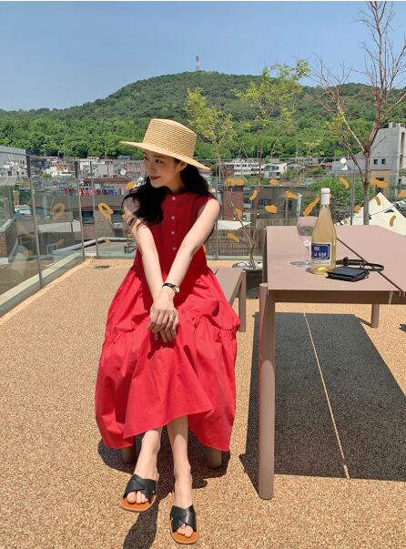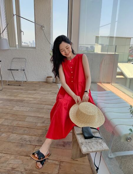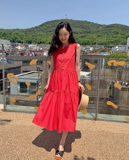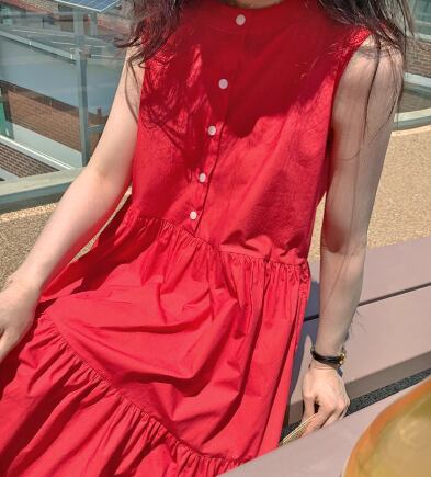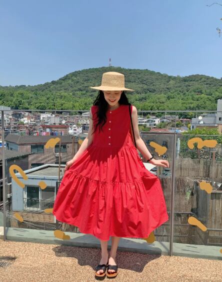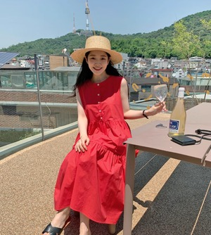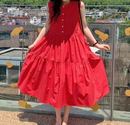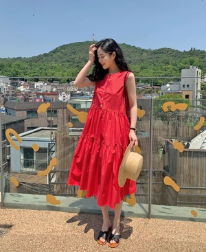 ふんわり広がるティアードデザインが愛らしい、ミディアム丈のノースリーブワンピース。ウエストマークとフロントボタンでシルエットにメリハリをつけ、大人可愛い雰囲気を引き立てます。