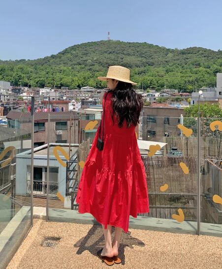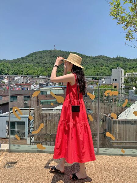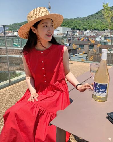シンプルながらもこなれ感があり、デートや女子会、ショッピングなど幅広いシーンにマッチ。赤色が華やかさを添え、主役級の存在感を放ちます。