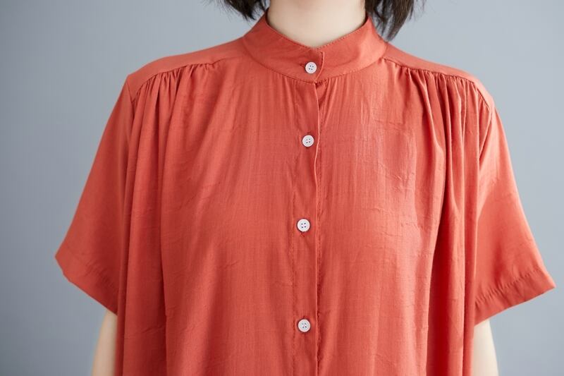 体型カバーができるデザインながら、楽ちんさも兼ね備えた一枚。おしゃれなイメージを与えるボタンディテールや、ラフでありながらも上品さを感じさせる仕上がり。無地のクリーンなソリッドカラーは、コーディネートの幅を広げ、シンプルなのに存在感のあるアイテムです。