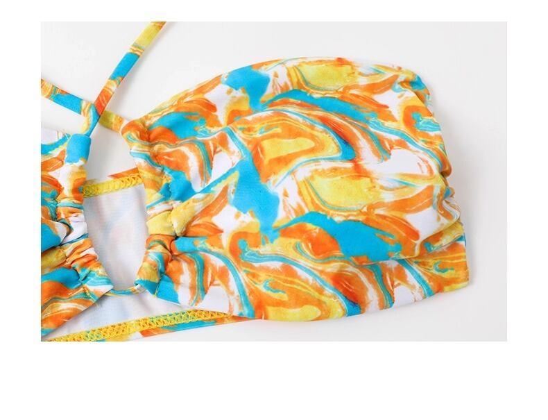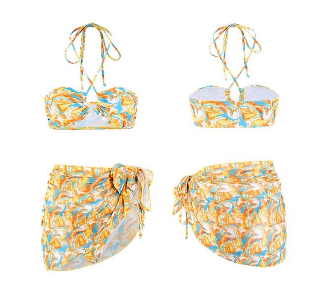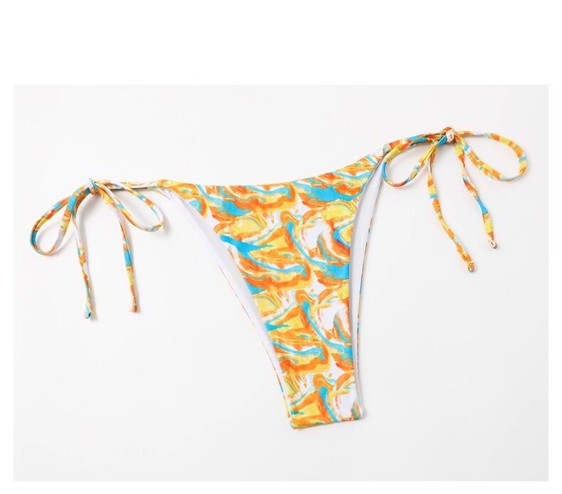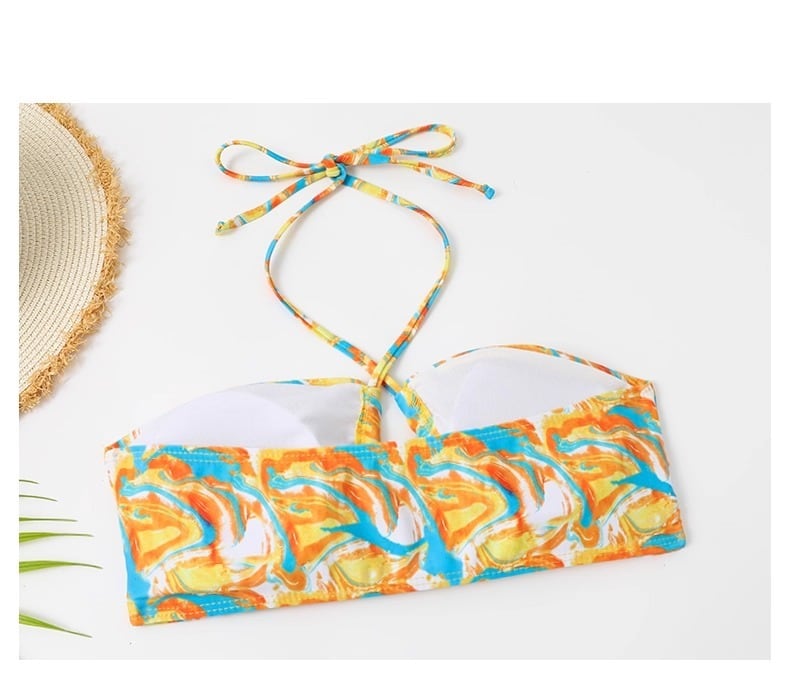 タンキニ・バンドゥのスタイルで、セパレートタイプの三角ビキニとビスチェがセットになっています。