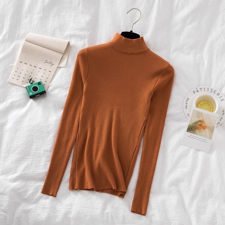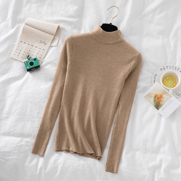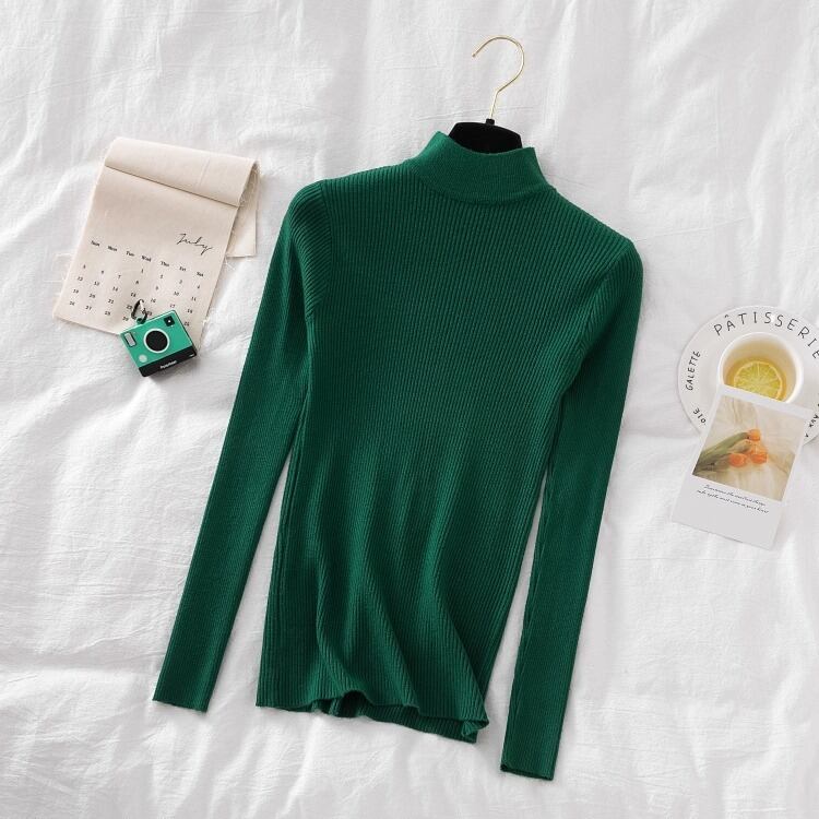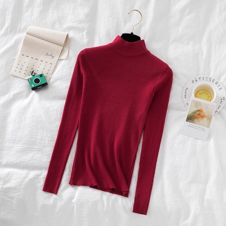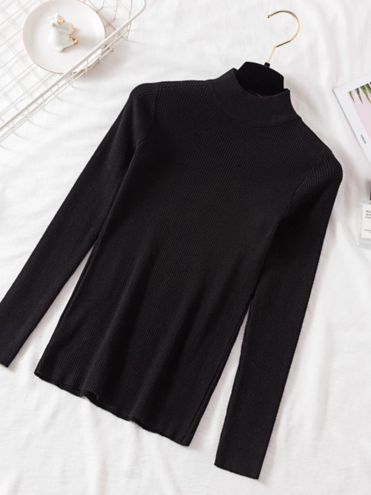 シンプルなハイネックのレディースのセーターです。
