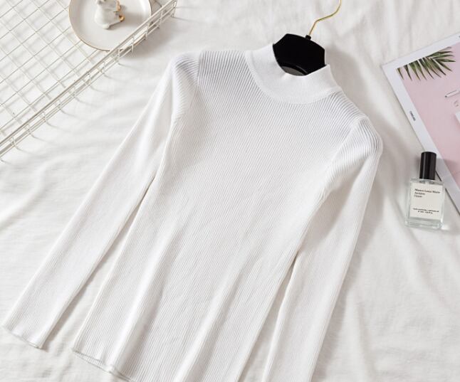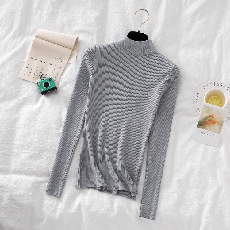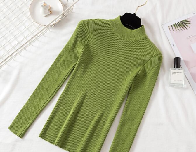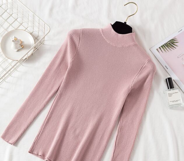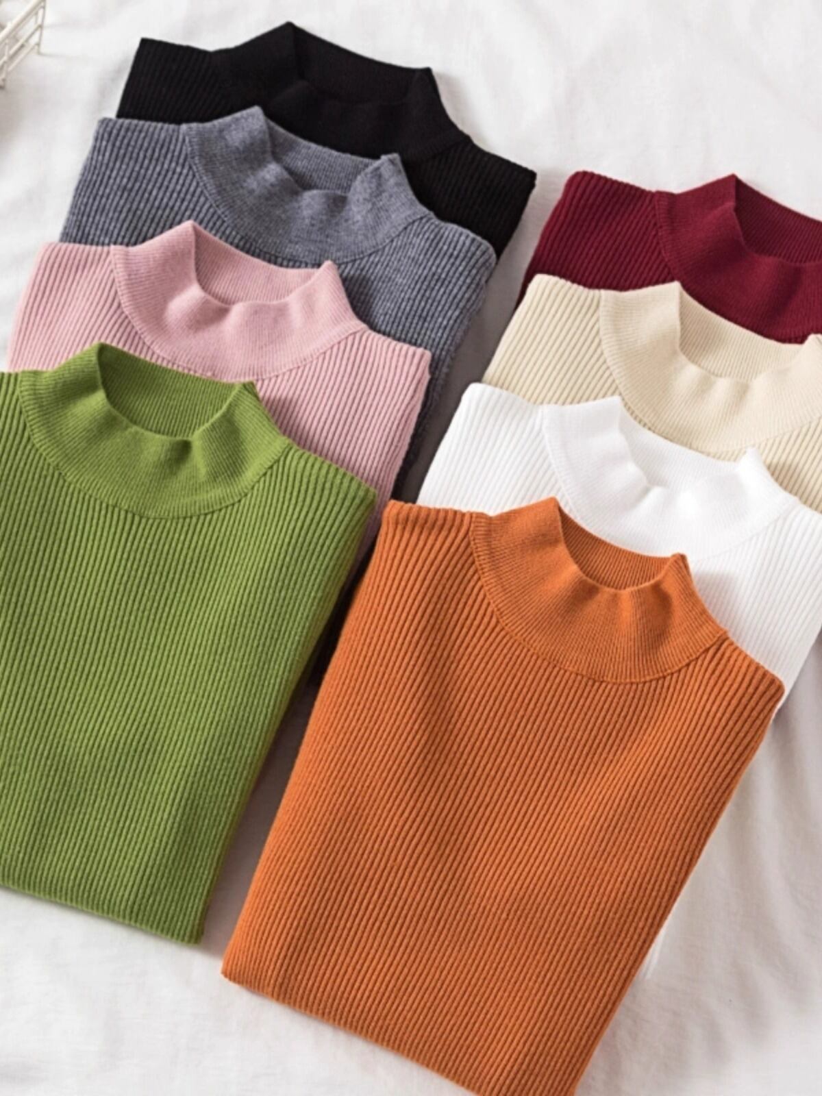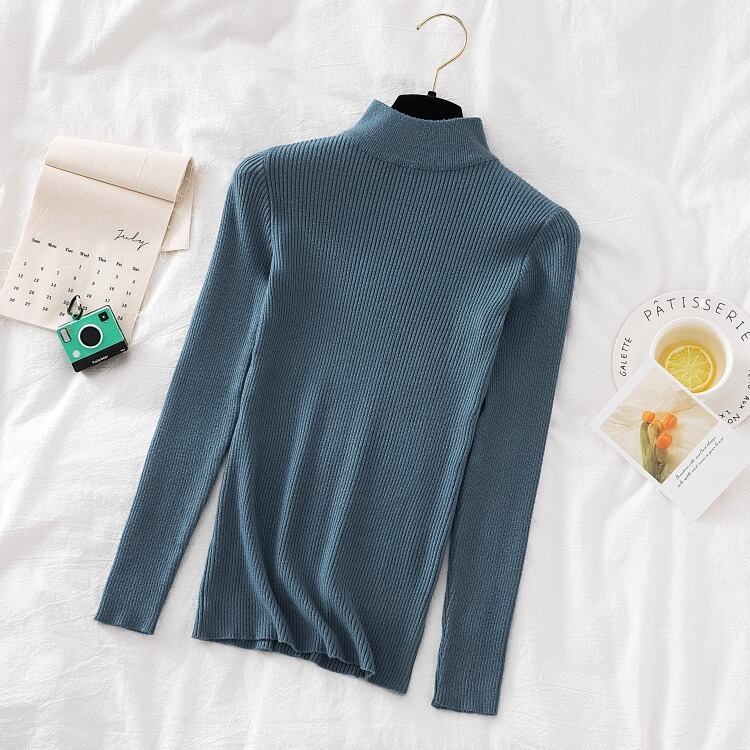 シンプルなハイネックのレディースのセーターです。