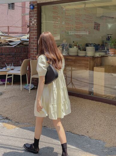 デートや女子会、旅行やショッピングなど幅広いシーンにマッチし、淡い黄色は優しげに、ネイビーは上品に着こなせるカラーバリエーションも魅力。トレンド感と清楚な可愛らしさを兼ね備えた一枚です。