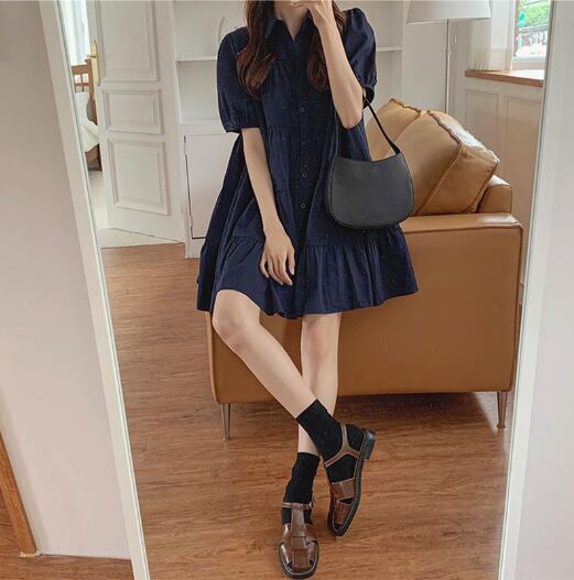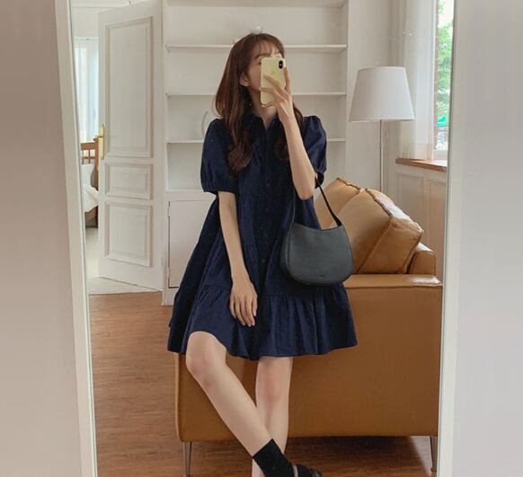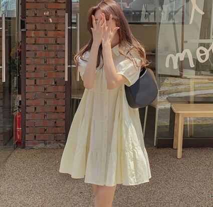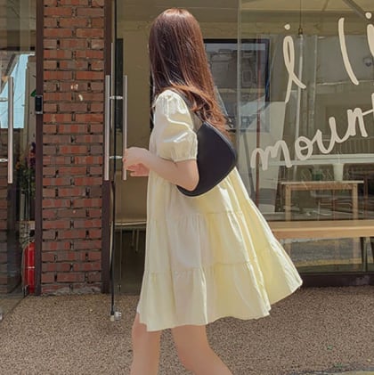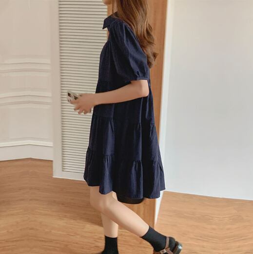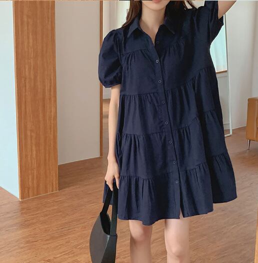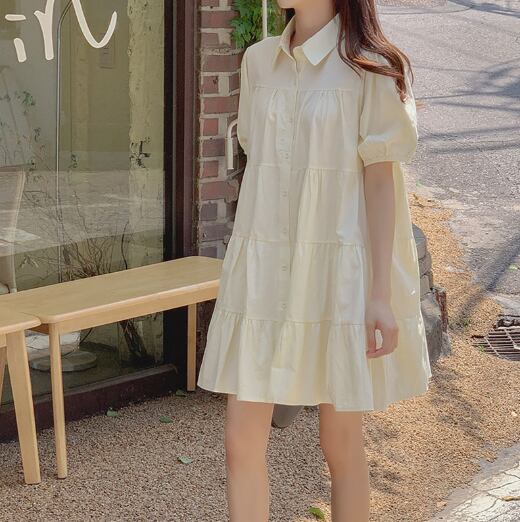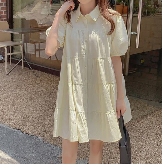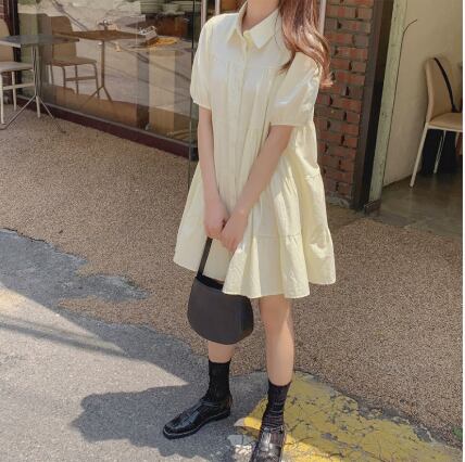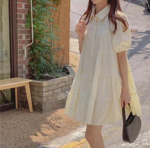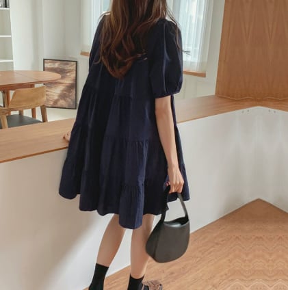 フェミニンで愛らしい雰囲気を纏える、ミニ丈のティアードワンピース。襟付きデザインできれいめな印象を与え、Aラインシルエットが体型をさりげなくカバーしてくれます。前開きデザインで着脱も楽ちん。