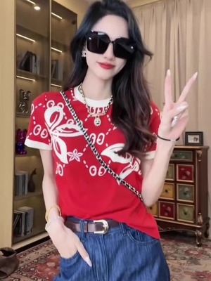 半袖のクルーネックデザインに、Iラインシルエットが美しい一枚。薄手素材なので、春夏の季節にぴったりです。
