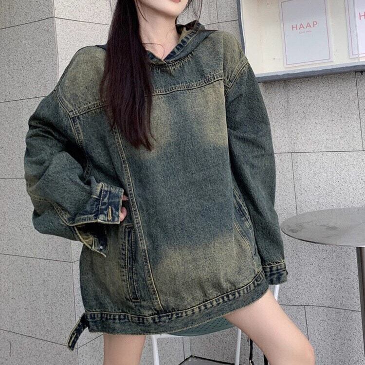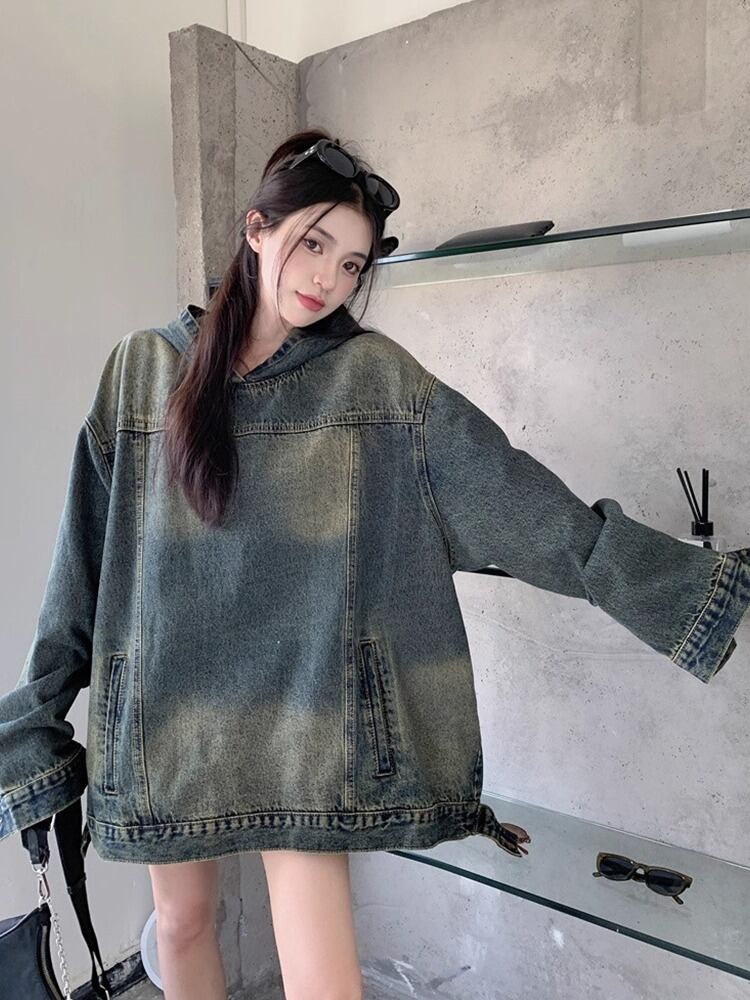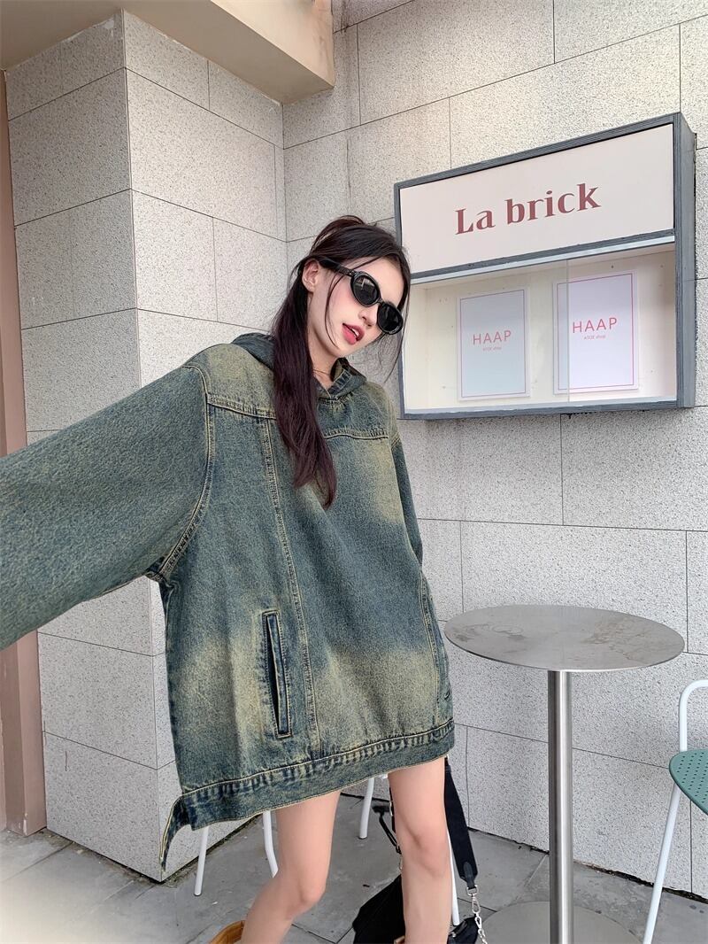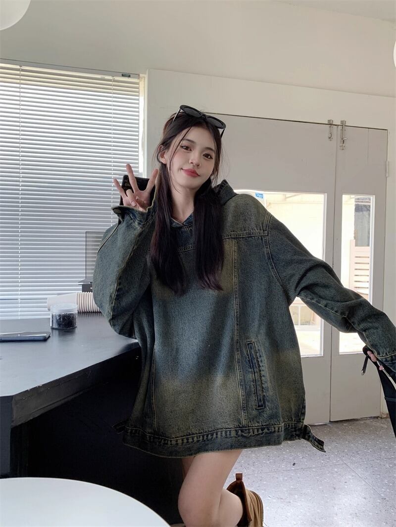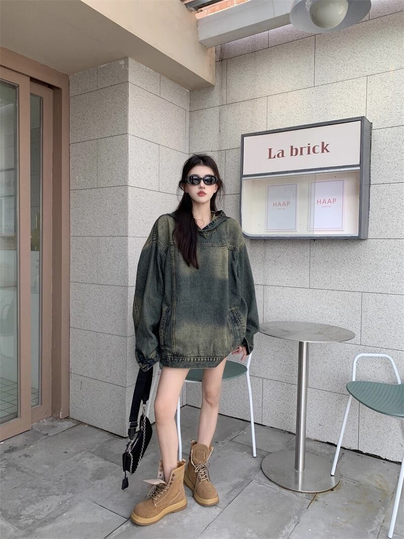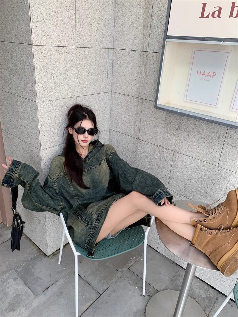 トレンド感と抜け感を兼ね備えたデニム素材のロング丈パーカー。
