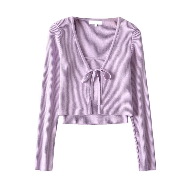 上品でかわいらしさを兼ね備えたニットカーディガンとキャミソールのセットアップです。